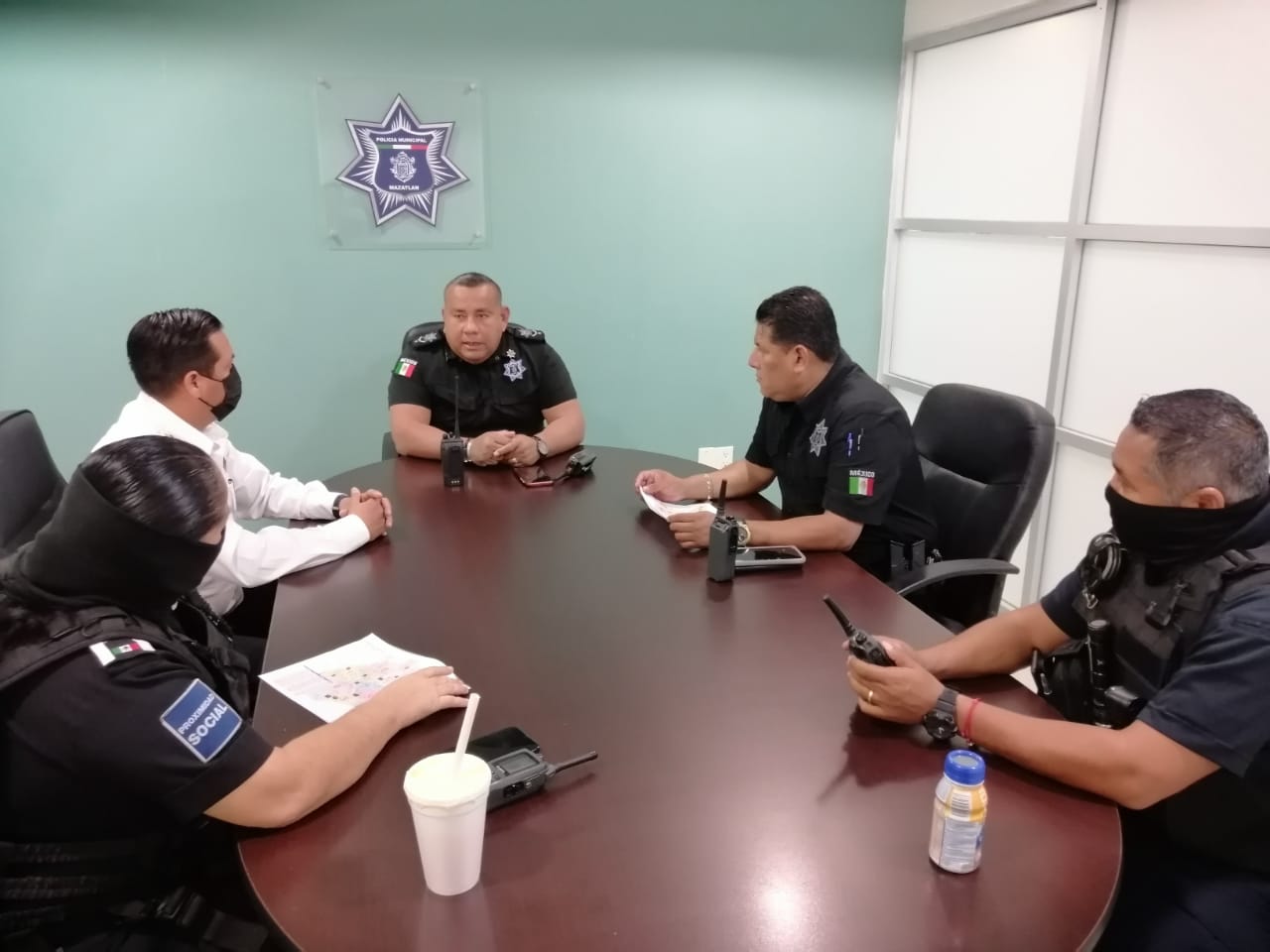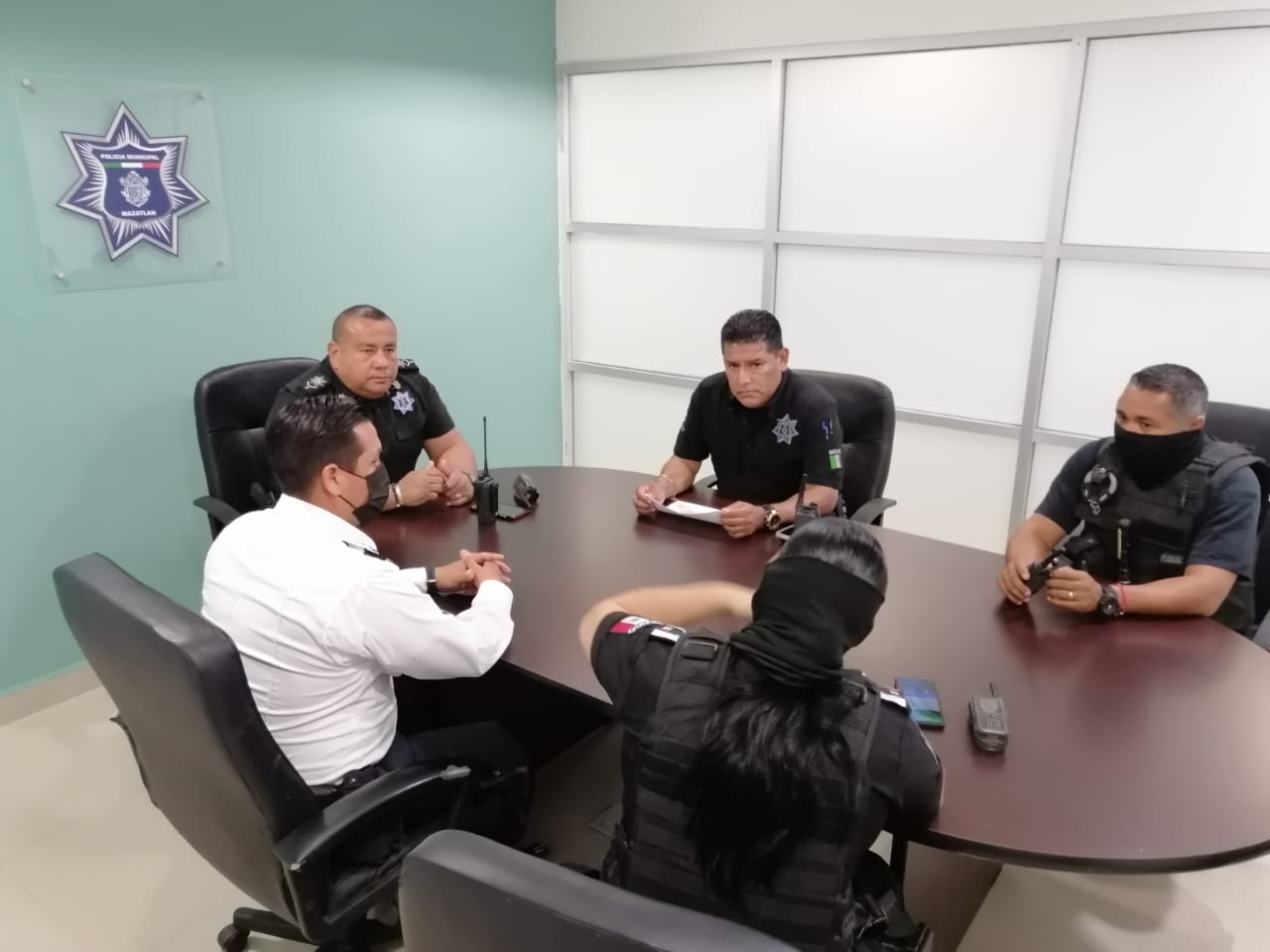 Mazatlán.-El Secretario de Seguridad Pública y Tránsito Municipal, Comisario Juan Ramón Alfaro Gaxiola, se reunió con altos mandos de la Secretaría para reforzar los operativos en materia de asaltos a comercios en el puerto, así como implementar el operativo “Circula Seguro con tu Casco”, para disminuir los accidentes en motocicletas.