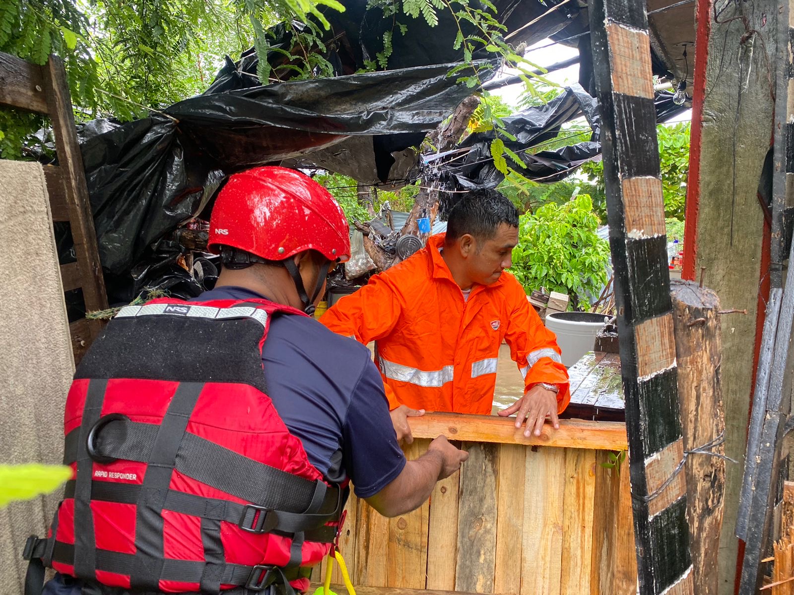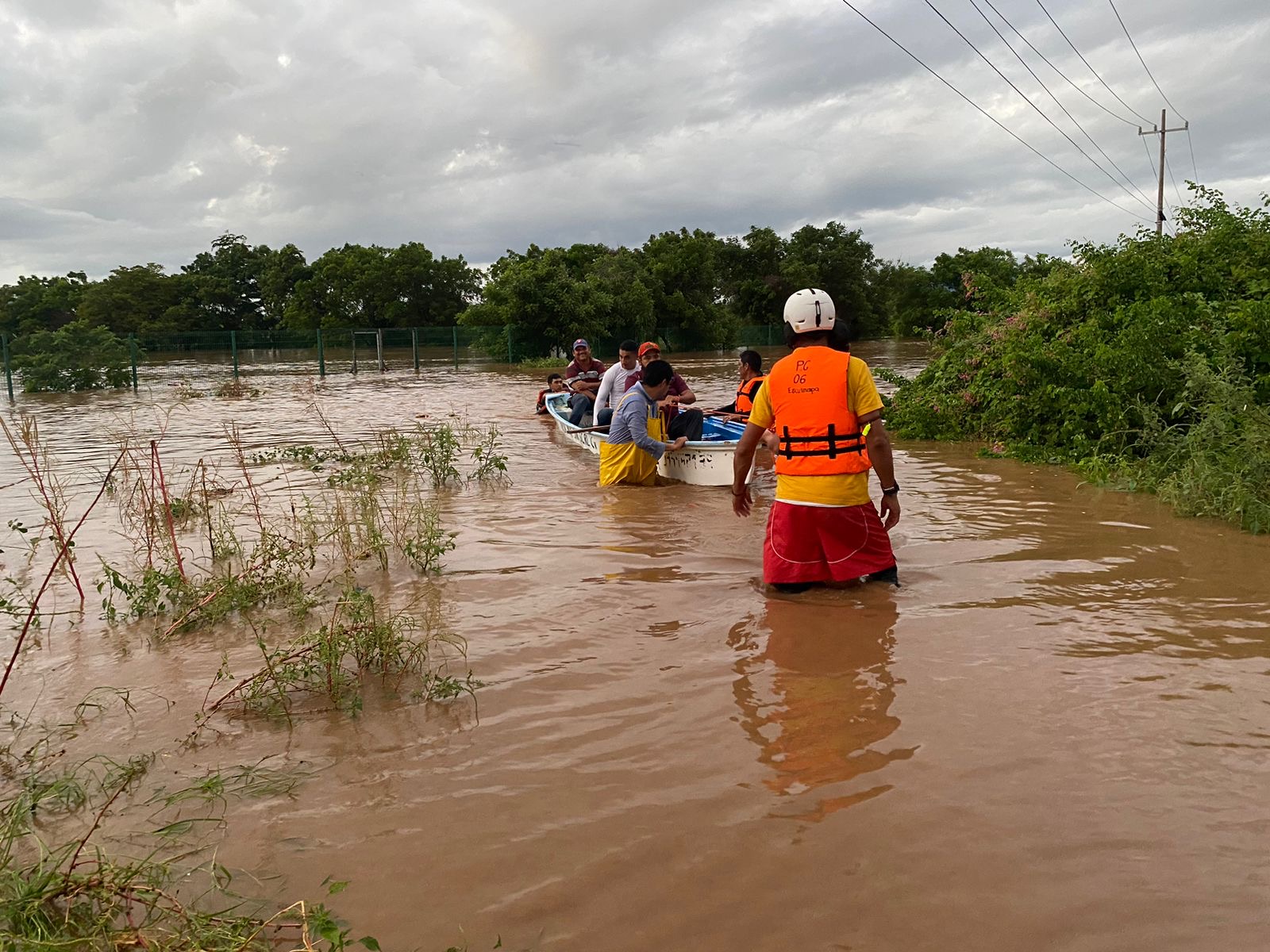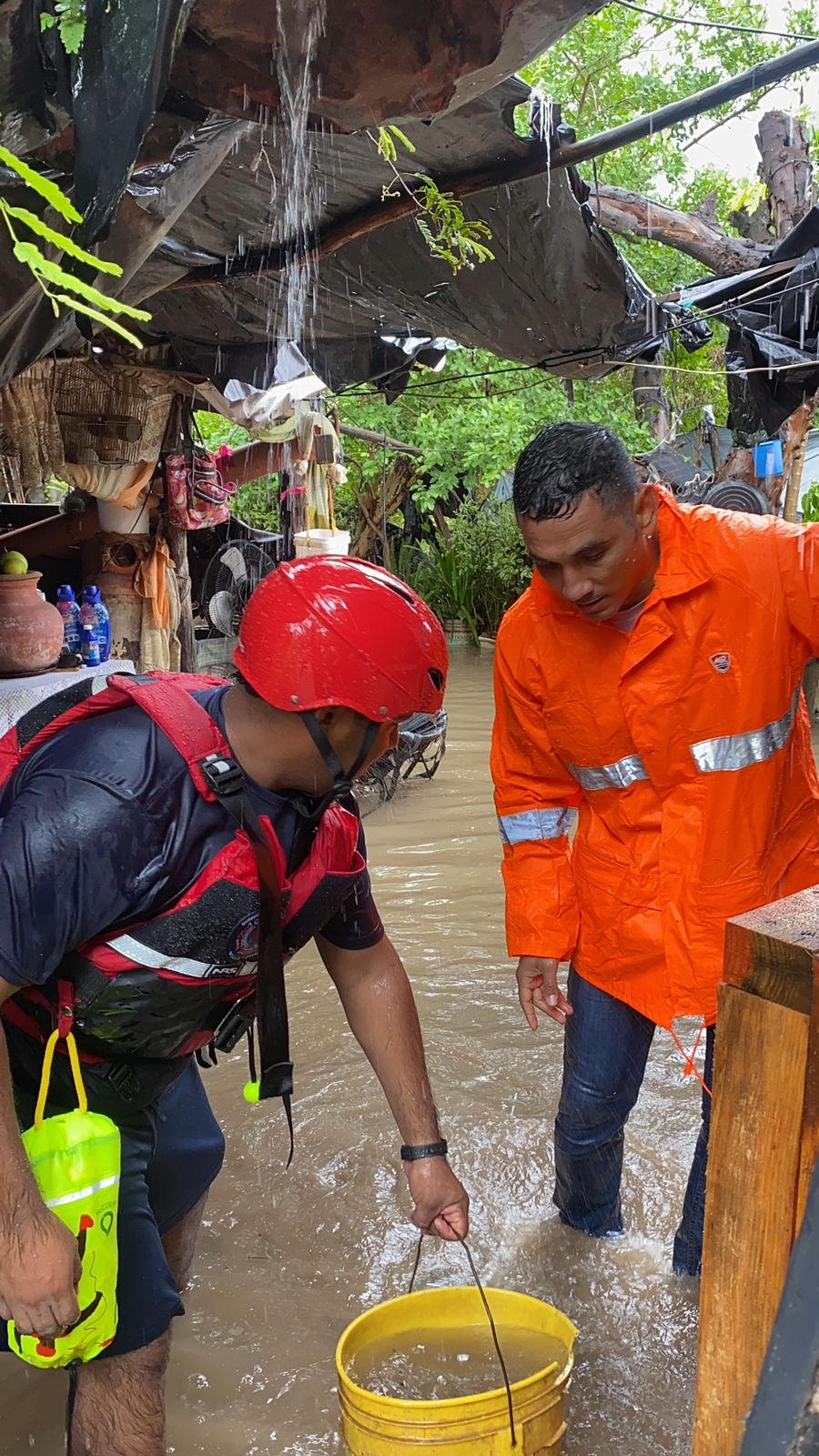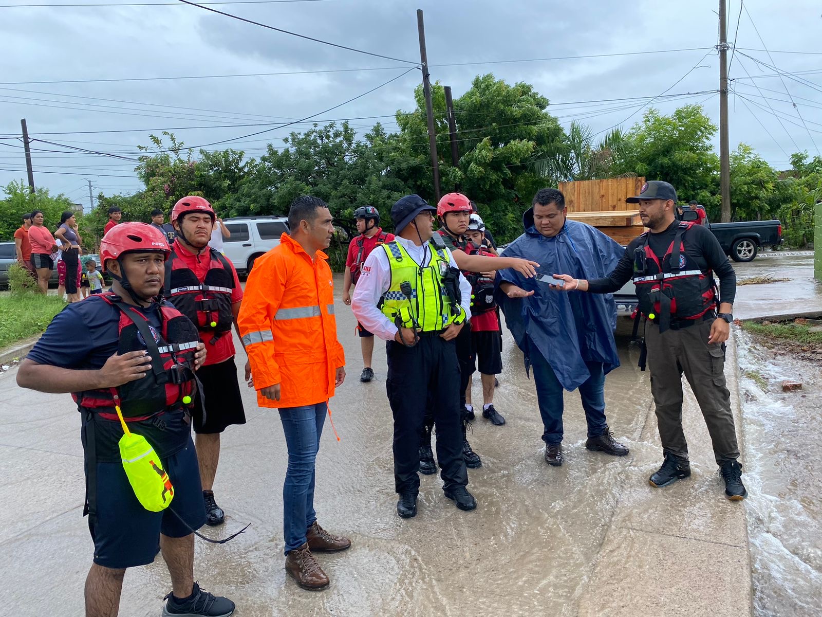 A muy temprana hora, la cuadrilla integrada por más de 12 personas, acudieron a ayudar a evacuar alrededor de 4 familias de la colonia 7 de abril que se encontraba en riesgo, y a apoyar a otras más que sus hogares se estaban inundando por las precipitaciones que se estaban registrando en las colonias Julio Arroyo y Agustina Ramírez.