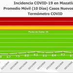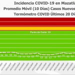 El Termómetro de Casos Nuevos Diarios presentó un incremento de 1.6 grados y este día se ubicó en los 9.7 grados Covid, promedio de los últimos 10 días.