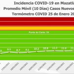 Mencionó que el Termómetro de Casos Nuevos Diarios, que el Gobierno Municipal emplea para medir la incidencia de la pandemia en el puerto, hoy se ubicó en los 12.8 grados Covid, promedio de los 10 últimos dias.