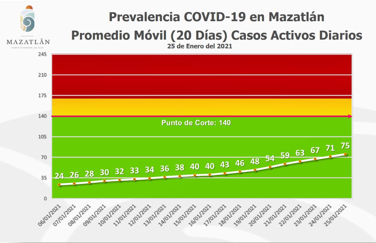Dijo que Mazatlán amaneció este martes con 81 pacientes, cifra que lo mantiene en la cuarta posición con casos activos en el estado, por debajo de Culiacán que hoy presentó 493, Ahome 166 y Guasave 134.