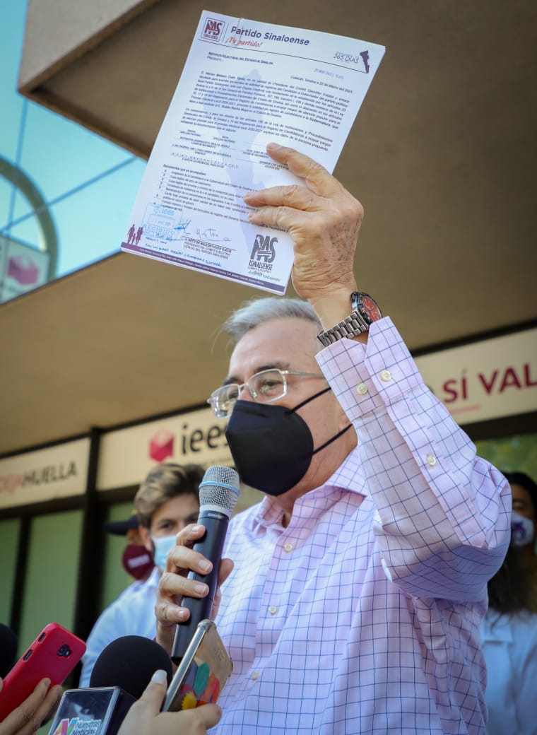 Acompañado por sus hijos Eneyda, Rubén, Ricardo y José Jesús Rocha Ruiz; el presidente estatal del PAS, Héctor Melesio Cuén Ojeda; la diputada con licencia Angélica Díaz de Cuén; y el candidato común por Morena y el PAS a la alcaldía de Mazatlán, Luis Guillermo Benítez Torres, en punto de las 9:00 de la mañana, Rocha Moya llegó a las instalaciones del IEES, donde fue recibido cálidamente por decenas de militantes y simpatizantes pasistas.