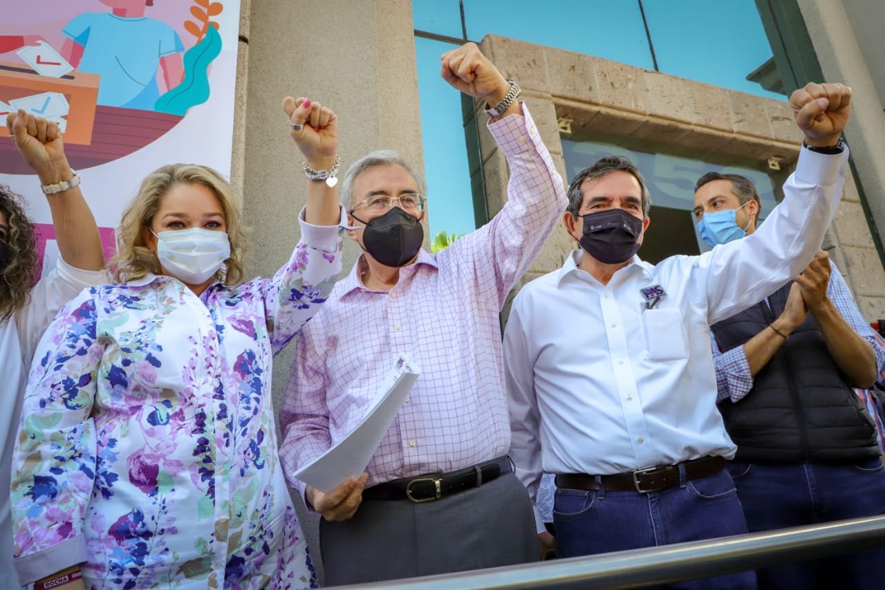 Culiacán, Sinaloa. Al registrarse como candidato a la gubernatura por el Partido Sinaloense ante el Instituto Electoral del Estado de Sinaloa, el senador con licencia Dr. Rubén Rocha Moya concretó la alianza en candidatura común Morena-PAS por la transformación de Sinaloa.
