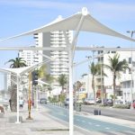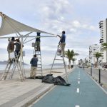 Mazatlán.- Para mejorar la imagen urbana de la Avenida Del Mar, el Gobierno Municipal, a través de las direcciones de Obras Públicas y Servicios Públicos, está rehabilitando la estructura pública ubicada sobre el malecón, como velarias, ciclovía y paraderos de camiones.