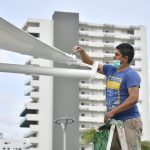 Obras Públicas y Servicios Públicos dan mantenimiento a velarias, ciclovía y paraderos de camiones sobre el malecón