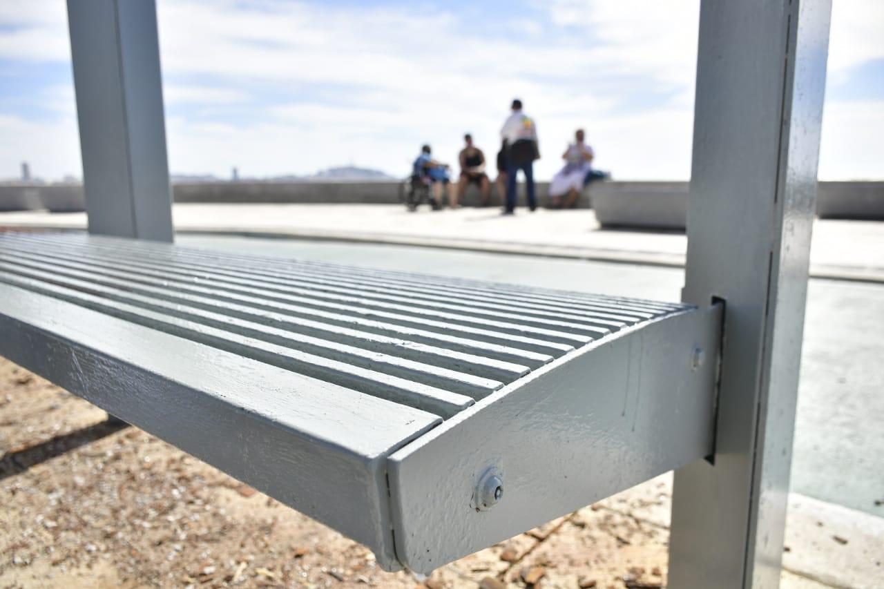 Mazatlán.- Para mejorar la imagen urbana de la Avenida Del Mar, el Gobierno Municipal, a través de las direcciones de Obras Públicas y Servicios Públicos, está rehabilitando la estructura pública ubicada sobre el malecón, como velarias, ciclovía y paraderos de camiones.