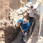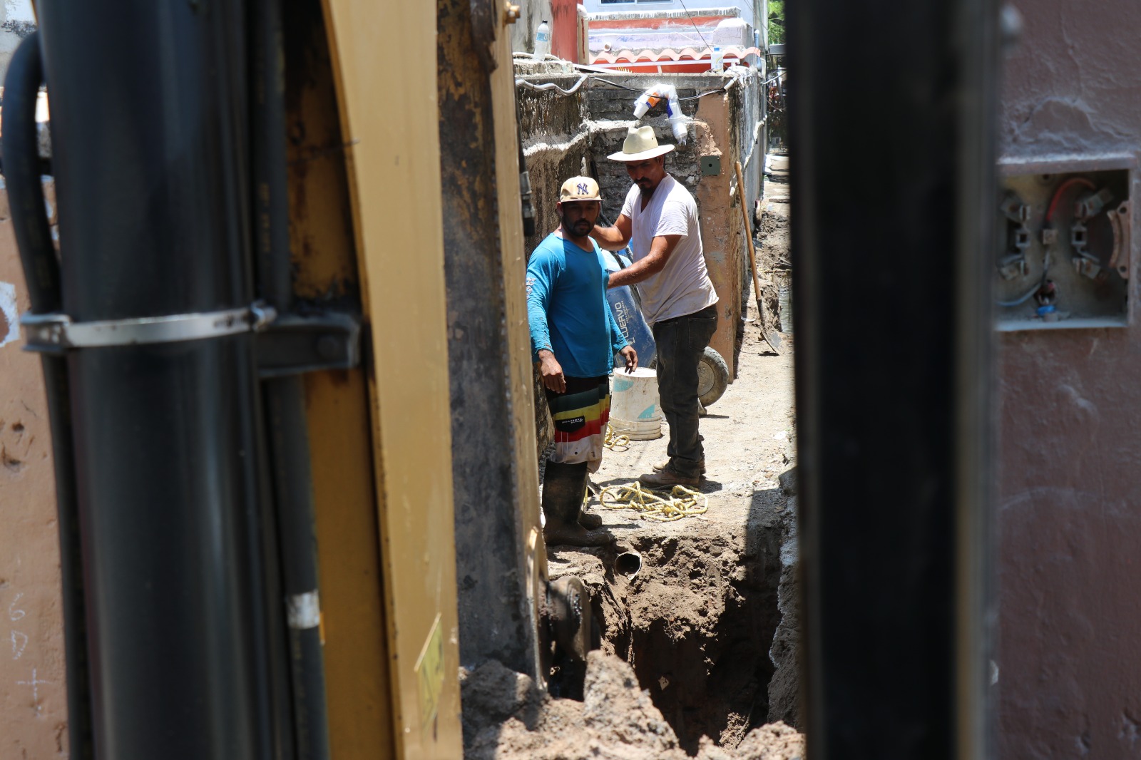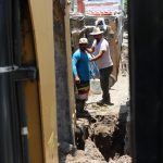 Debido a la longitud y estrechez del callejón, gran parte del trabajo de excavación se hizo a mano, con pico y pala, sólo los primeros metros a partir de la banqueta se excavó a con maquinaria pesada para la introducción de los ductos de PVC sanitario de 8 pulgadas de diámetro.
