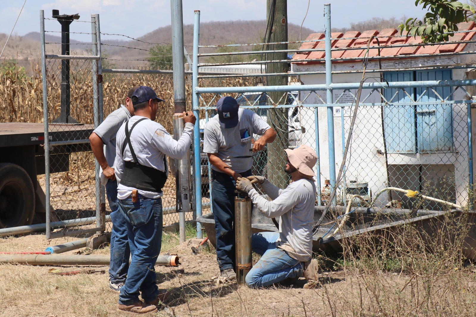 Siqueros, Mazatlán, Sinaloa, a 16 de Mayo de 2023._ Lo que programó como una maniobra de revisión de la bomba del pozo que abastece de agua potable a esta Sindicatura, terminó como un trabajo de mantenimiento preventivo al sistema de extracción y potabilización, con cual el Gobierno de Mazatlán, a través de Jumapam, garantiza su buen funcionamiento en lo sucesivo.