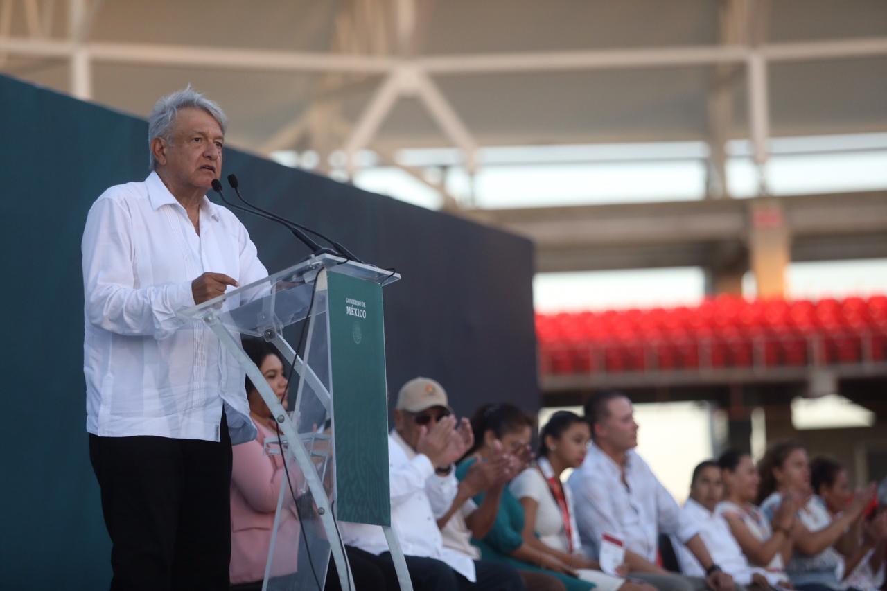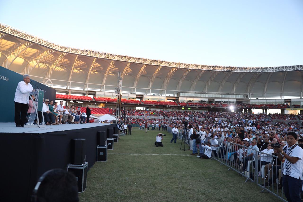 El Mandatario de la Nación se reunió con miles de mazatlecos en el Estadio Teodoro Mariscal, a los que informó sobre los beneficios de los programas integrales de bienestar, que impulsa su Gobierno como parte de la Cuarta Transformación de la vida pública país.
