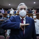 Culiacán, Sinaloa, viernes 1 de octubre 2021. Al asistir como invitado especial a la sesión solemne de instalación de la LXIV Legislatura del Congreso del Estado, el gobernador electo Rubén Rocha Moya puntualizó que como titular del Poder Ejecutivo sostendrá con el Poder Legislativo una relación respetuosa y productiva que contribuya al desarrollo de Sinaloa.