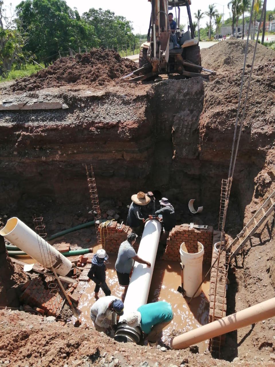 Mazatlán, Sinaloa.- Los trabajos de reparación de la línea de agua potable de 18 pulgadas, sobre la Avenida Pacífico, que fue dañada por una constructora que estaba trabajando para Fincamex en la interconexión a la red de agua potable para el fraccionamiento residencial Sonterra, ya concluyeron.
