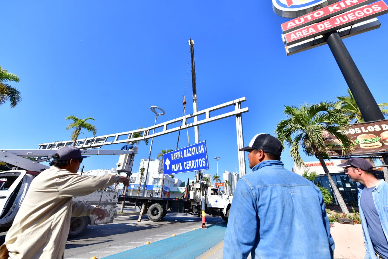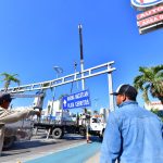 Mazatlán.- Para evitar riesgos tanto para automovilistas como transeúntes, personal de Obras Públicas Municipales retiró esta mañana una estructura de fierro que sostenía una señalética vial ubicada en la avenida Camarón-Sábalo, informó Luis Gerardo Núñez Gutiérrez, titular de esta dependencia.