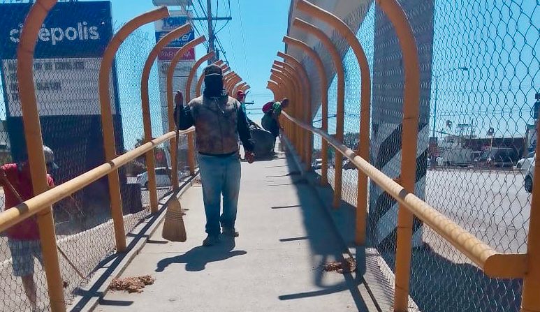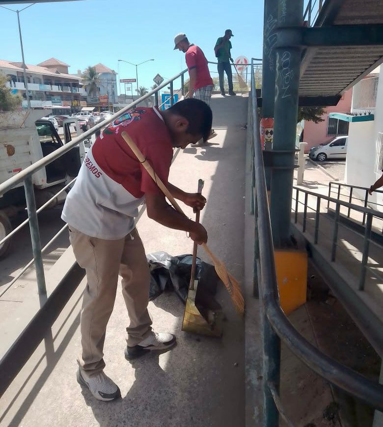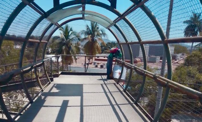Mazatlán, Sinaloa, 21 de marzo de 2023.- Los puentes peatonales de diversos puntos de la ciudad fueron atendidos por la cuadrilla de “papeleo” del área de aseo urbano de la dirección de servicios públicos municipales.