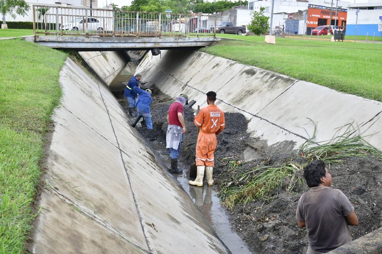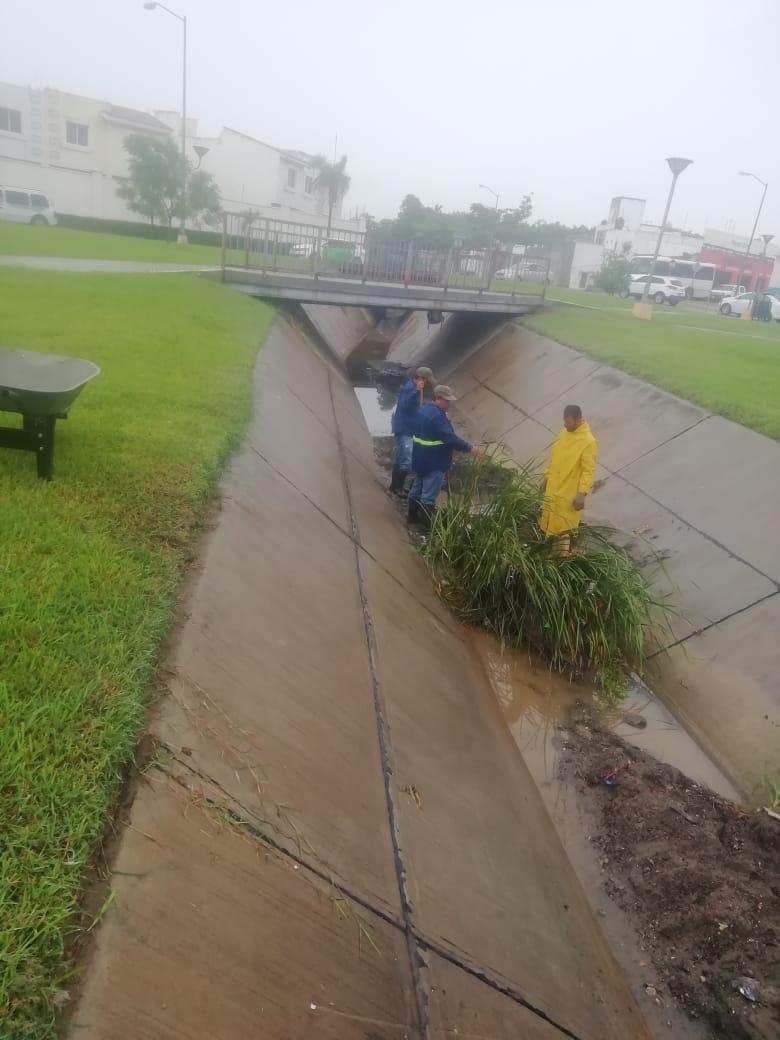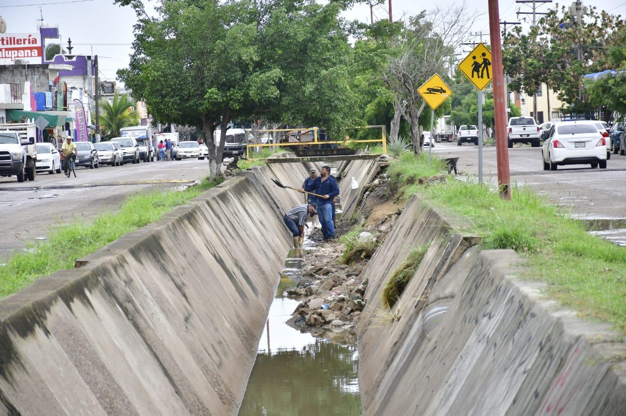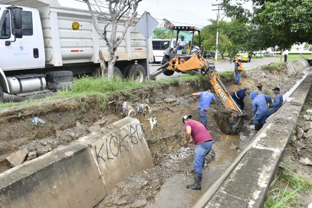 Este martes, agregó, cuadrillas de trabajadores hicieron labores de desazolve en el canal de la López Mateos, donde auxiliados con palas y carretillas retiraron lodo, rama de árboles, cartón y otros desechos que dejó el agua a su paso.