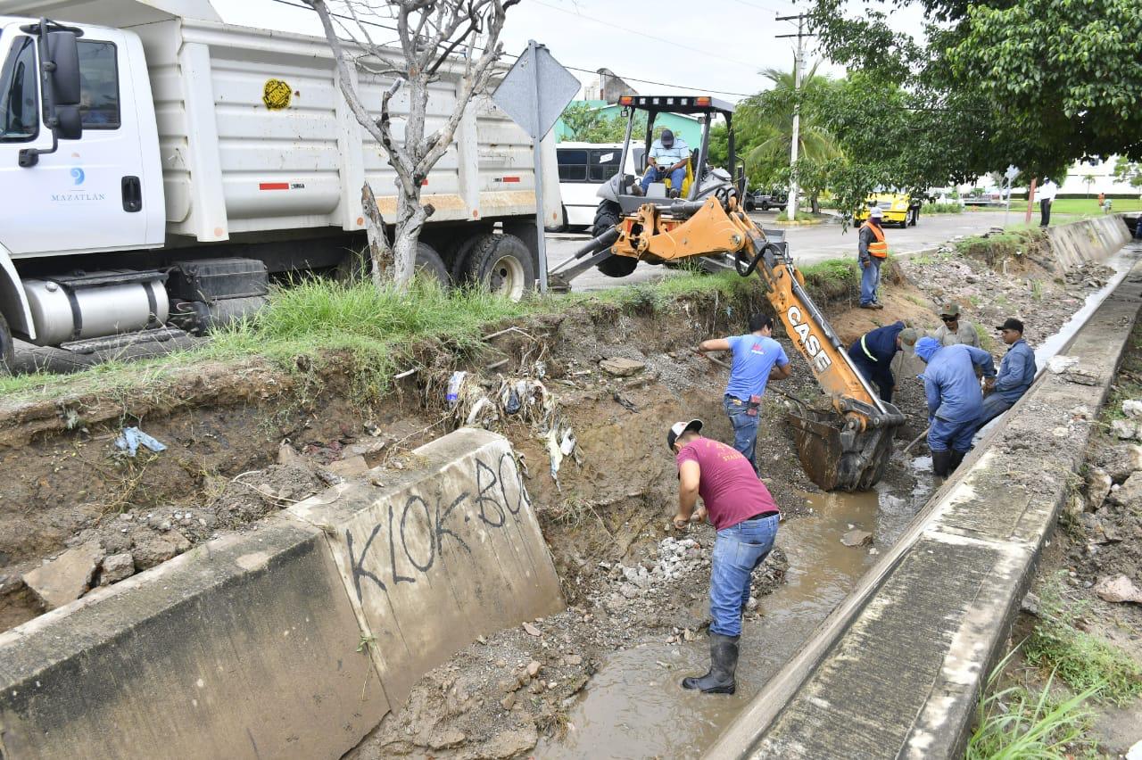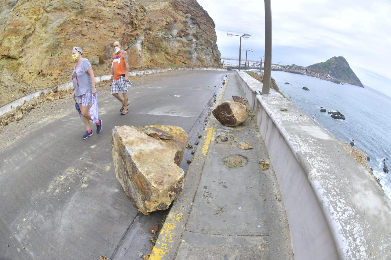 Además de la limpieza de los canales, los empleados municipales acudieron al Paseo del Centenario y al Paseo Olas Altas, frente al Monumento a la Mujer Mazatleca, donde retiraron de las vialidades las piedras que se desprendieron de los cerros del Vigía y de la Nevería.