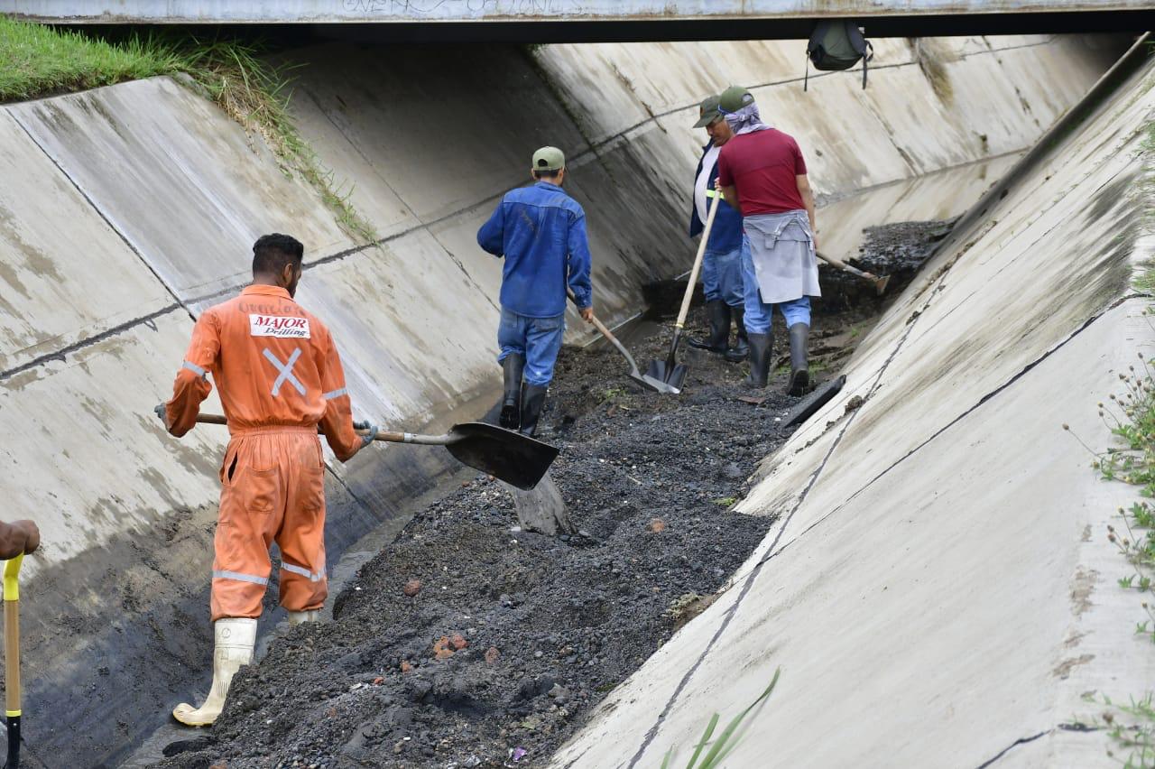 En el Infonavit Alarcón, utilizaron maquinaria pesada, camiones de volteo y palas para la limpieza de la estructura. De ahí retiraron material lodoso, escombro y plantas, lo que permitió el libre flujo del agua dejada por las ligeras lluvias de esta mañana.