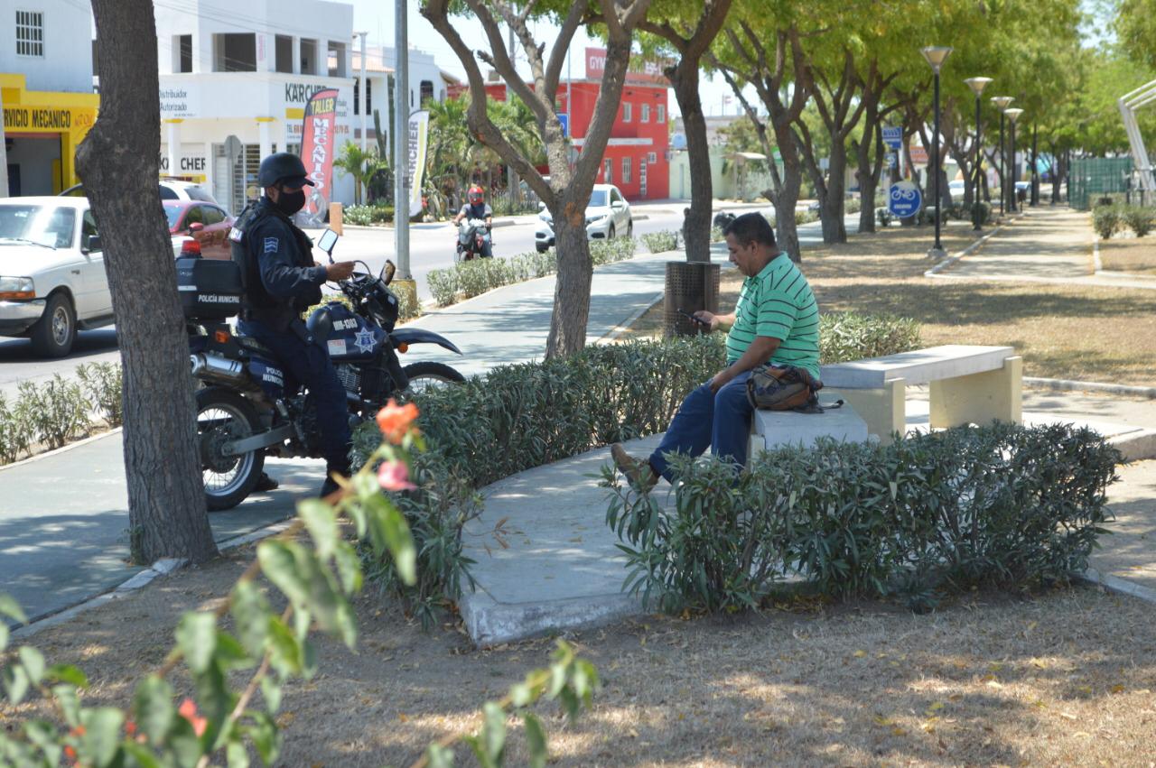 Mazatlán, Sinaloa.- Como parte de las acciones que el Gobierno Municipal lleva a cabo para enfrentar la pandemia del Coronavirus, la Secretaría de Seguridad Pública y Tránsito Municipal reforzó la vigilancia en el Parque Lineal.