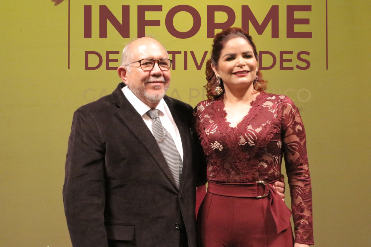 La rendición de cuentas se llevó a cabo en el Teatro Ángela Peralta, con pocos invitados debido a la emergencia sanitaria, y fue grabado para posteriormente transmitirse en las redes sociales.