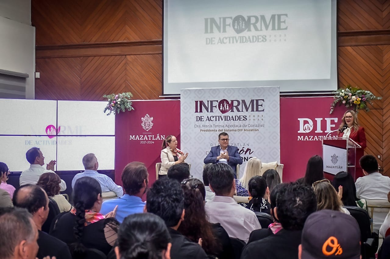 Mazatlán, Sinaloa, a 23 de octubre de 2024.- La presidenta de Sistema DIF Mazatlán, María Teresa Apodaca de González presentó hoy el Informe de Actividades 2023-2024, de la institución.