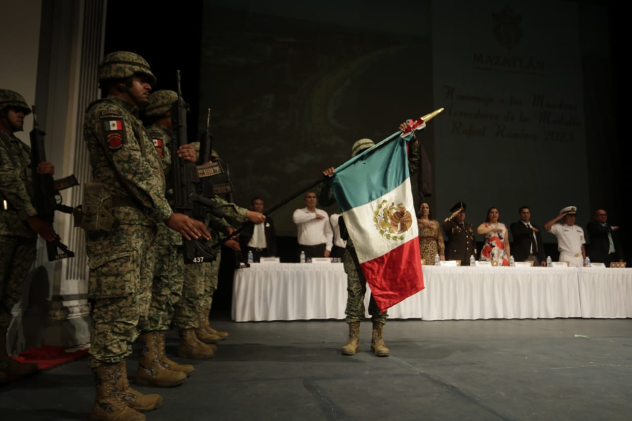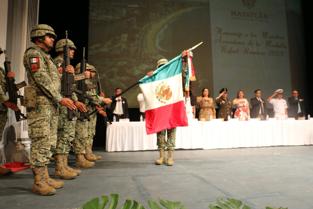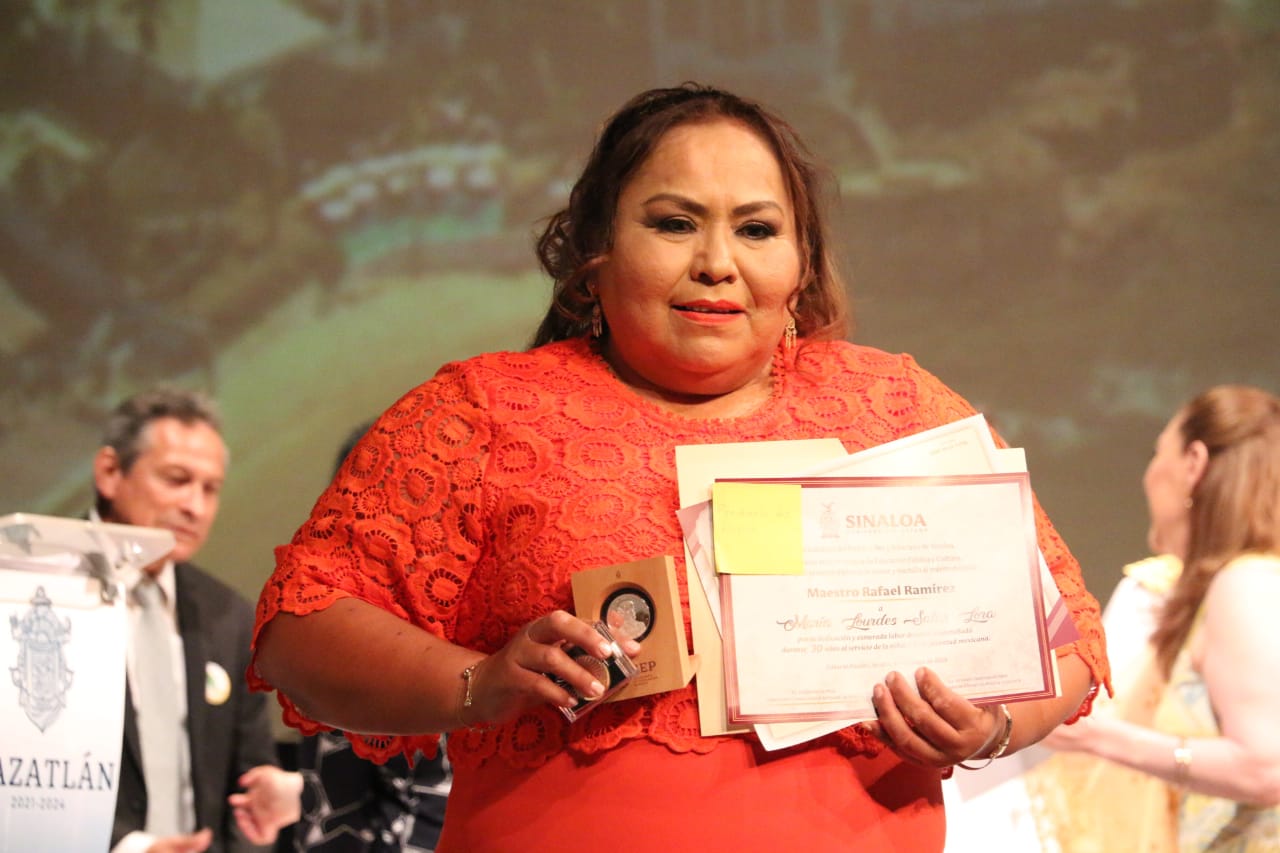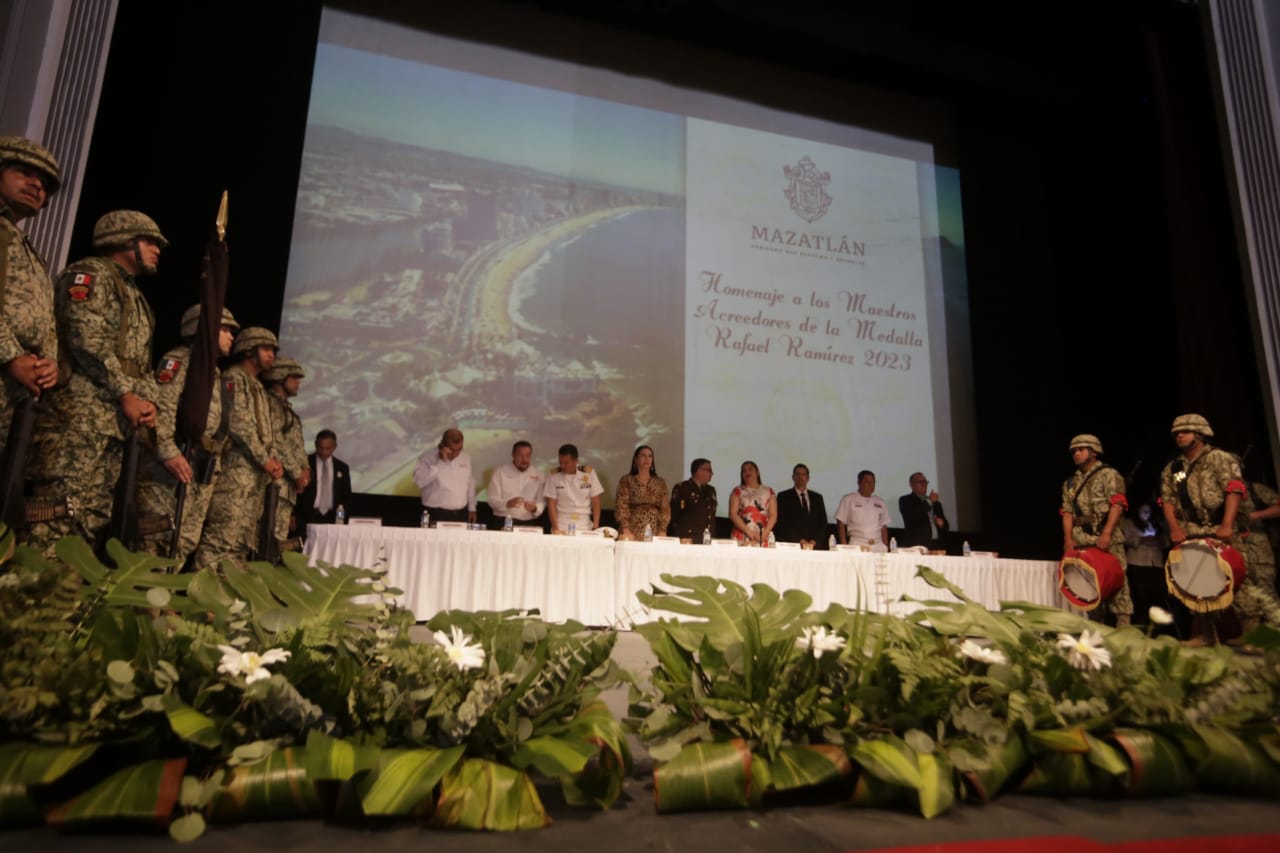 Mazatlán, Sinaloa, 15 de mayo de 2023.- En el marco del Día del Maestro el Gobierno Municipal de Mazatlán rindió un homenaje y reconocimiento a los maestros que han cumplido 28 y 40 años de trayectoria al servicio de la educación, distinguiéndolos con la entrega de la medalla al mérito “Rafael Ramírez”.