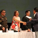 En representación del Alcalde Edgar González, la Secretaria del Ayuntamiento, Verenice Oleta Benítez, acompañada del Subsecretario de Vinculación Social de la Secretaría de Educación Publica y Cultura de Sinaloa, Jorge Rafael Quintero Salazar, autoridades estatales, civiles, navales y educativas entregó la distinción a 81 docentes que han permanecido en esta gran labor educativa.