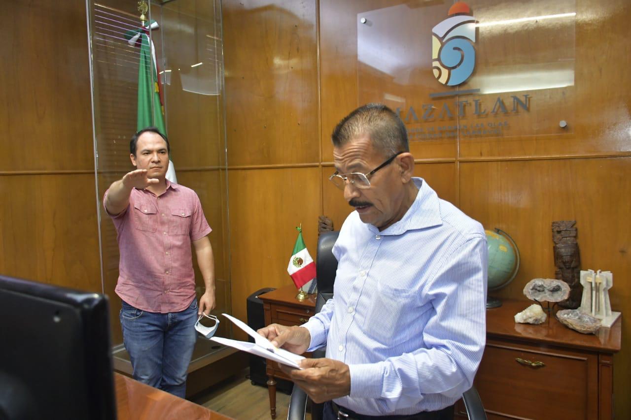 Mazatlán.- El Presidente Municipal provisional, José Manuel Villalobos Jiménez, tomó la protesta de ley a Nayla Adilene Velarde Narváez como Síndica Procuradora y a Jesús Antonio Ramírez Patiño, Julia Lucio Reyes y Jesús Emmanuel González Sandoval como regidores suplentes.