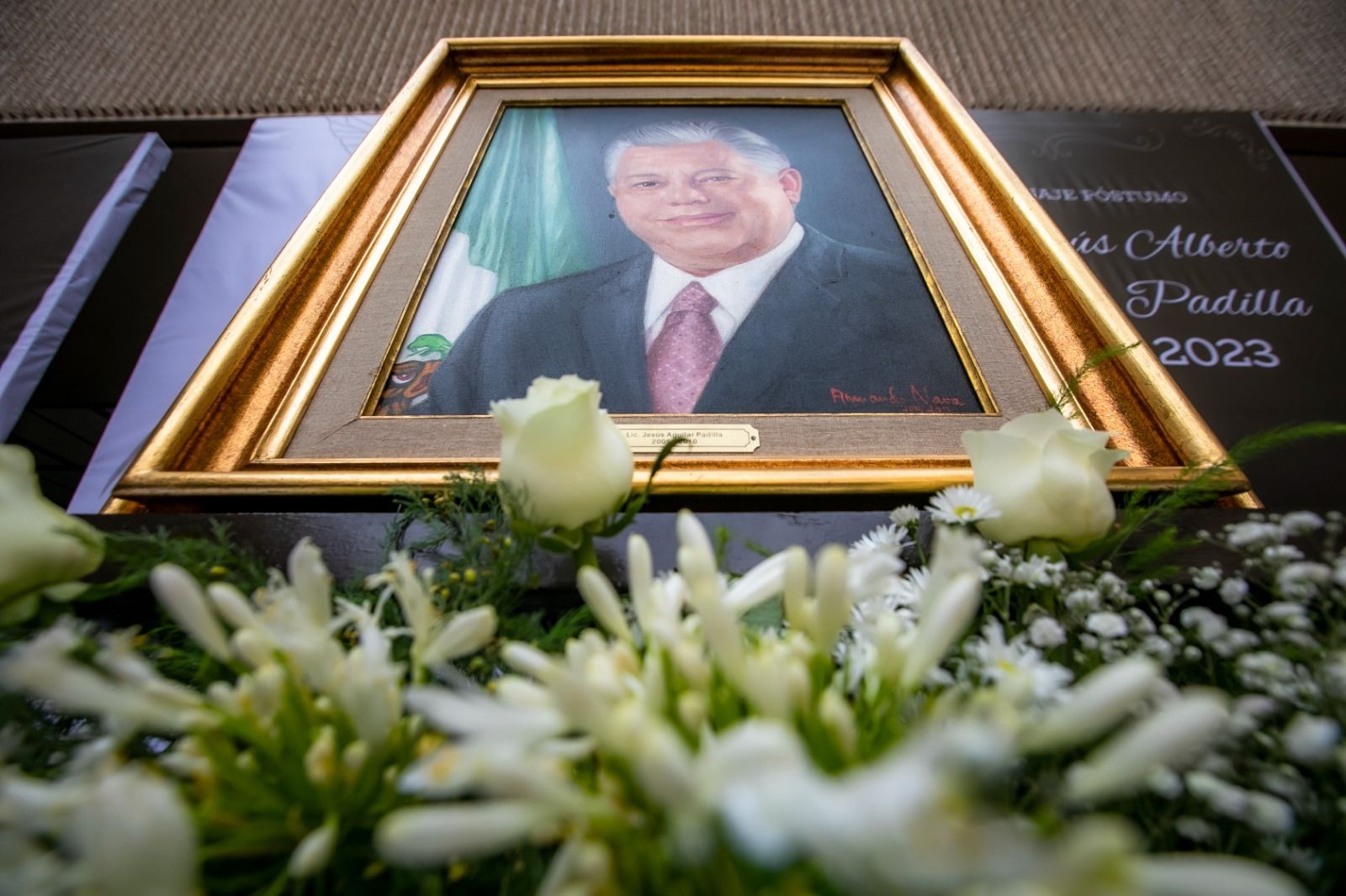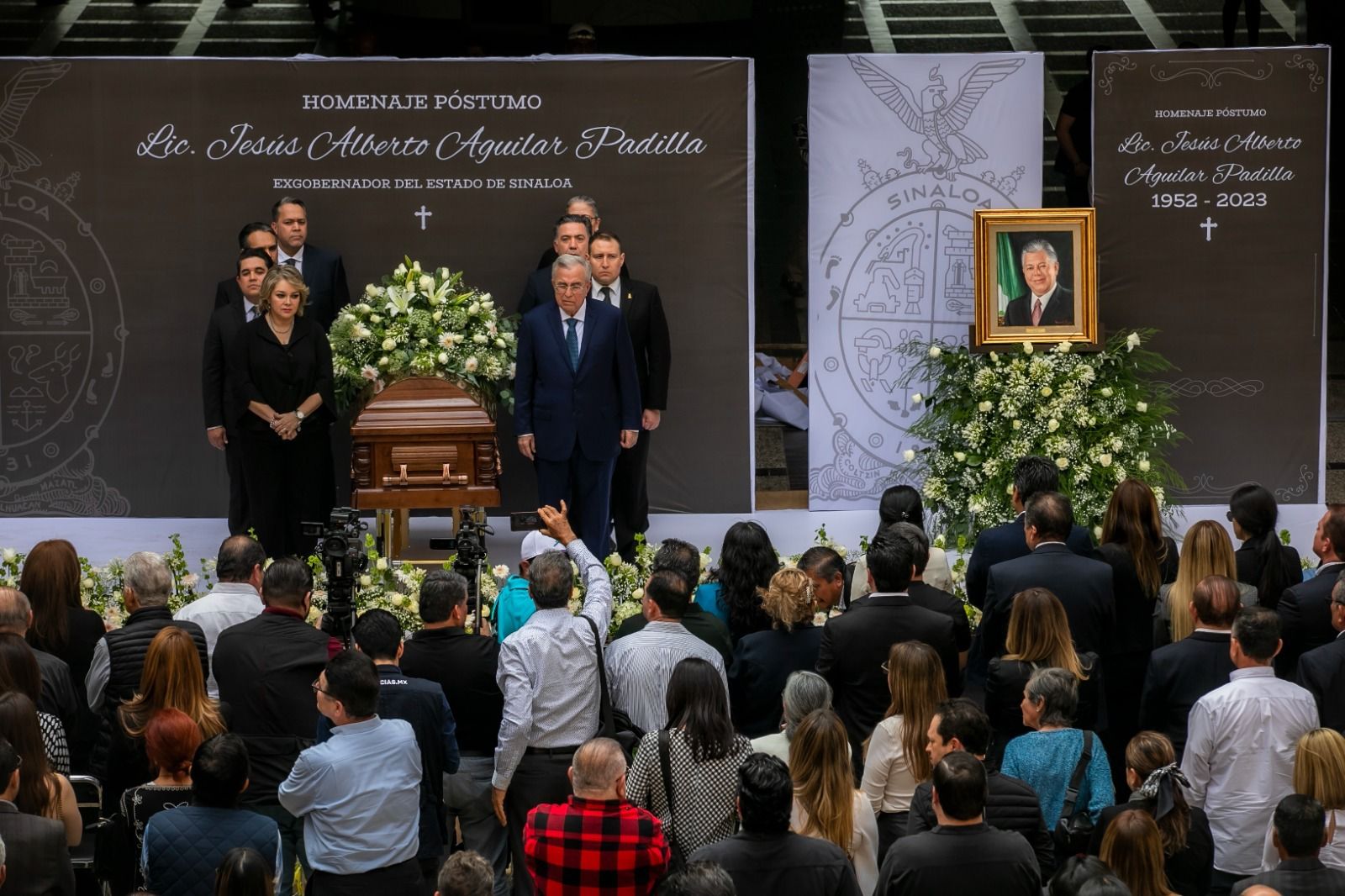 Enseguida montaron guardia de honor el gobernador Rocha; el secretario general de Gobierno, Enrique Inzunza Cázarez; la presidenta del Sistema DIF Sinaloa, Eneyda Rocha Ruiz; el presidente de la Mesa Directiva del Congreso del Estado, diputado Ricardo Madrid Pérez; el presidente del Supremo Tribunal de Justicia, magistrado Jesús Iván Chávez Rangel; el secretario de Administración y Finanzas, Enrique Díaz Vega; la secretaria de Educación Pública y Cultura, Graciela Domínguez Nava; y el diputado local Sergio Mario Arredondo Salas, primer yerno de Aguilar Padilla, pues contrajo matrimonio con la hija mayor Iris Aguilar Camacho.