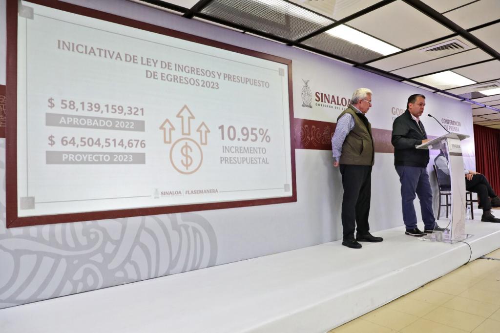 El secretario detalló que para el 2023 se pretende ejercer un presupuesto de 64 mil 504 millones 514 mil 676 pesos, cantidad que es mayor en un poco más de 6 mil millones de pesos con respecto al presupuesto aprobado este año, y que representa un incremento de 10.95 por ciento.