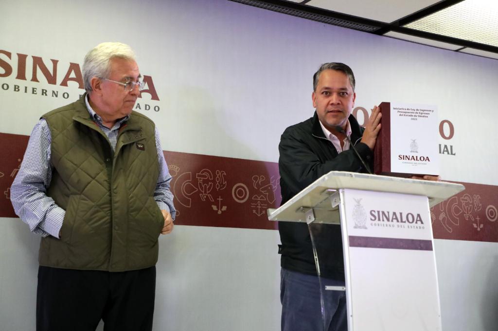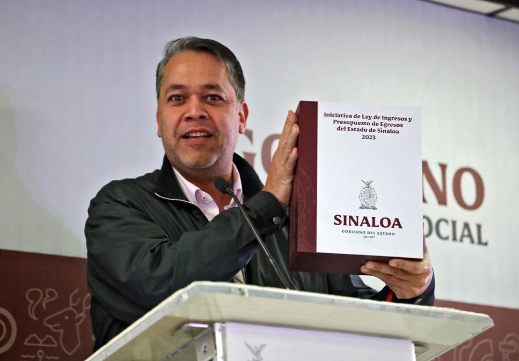 Culiacán, Sinaloa, a 28 de noviembre de 2022.- Durante su Conferencia Semanera, el gobernador Rubén Rocha Moya hizo un desglose de su Presupuesto de Egresos 2023 que este viernes envió al Congreso del Estado para su aprobación, el cual consiste en una propuesta de 64 mil 504 millones de pesos, que es un 10.95 por ciento mayor con respecto al aprobado para este 2022, y donde se contemplan incrementos en varios programas, siendo los de mayor magnitud, la obra pública, los programas sociales, la basificación de trabajadores de la salud, aportaciones a los municipios y un incremento a la UAS.