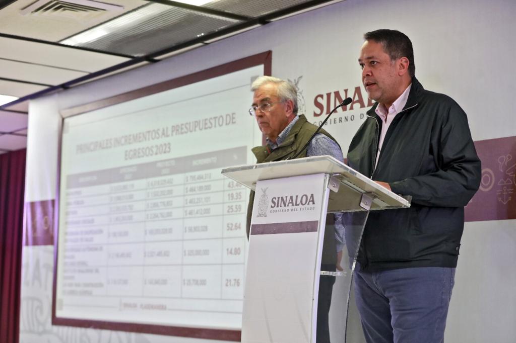 “Este año en el 2023 tuvimos un incremento de un poco más de 6 mil millones de pesos que es el 10.95 por ciento de incremento presupuestal. Los principales incrementos en el Presupuesto de Egresos es una pregunta que me hicieron saliendo del Congreso el viernes, se hizo aquí un resumen de algunos de ellos, no todos, pero los principales: A los municipios traen un incremento de 725 millones de pesos, es el 14.40 por ciento; en obra pública que fue uno de los principales que tuvieron incremento es el 43 por ciento, el año pasado eran 1 mil 68 millones, este año son 1 mil 532 millones; el ISSSTESIN el año pasado tuvo 2 mil 393 millones y este año tiene 2 mil 856 millones, son 463 millones de pesos más, es un 19.35 por ciento”, informó.