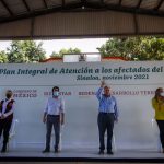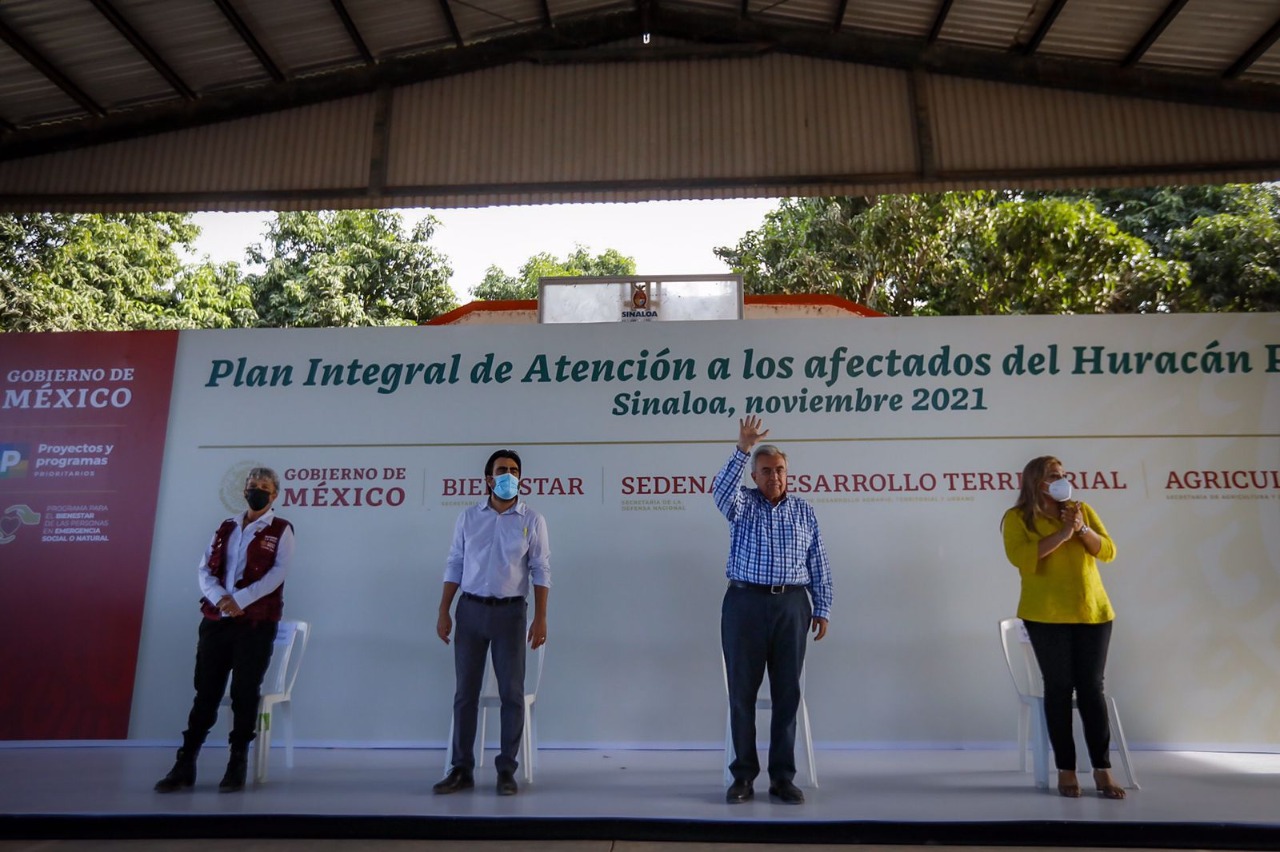 El mandatario estatal fue recibido en El Pozole por la alcaldesa de Rosario, Claudia Liliana Valdez Aguilar y por el delegado de los Programas para el Desarrollo en Sinaloa, Juan de Dios Gámez Mendívil, para entregar en total 888 cheques por 10 mil pesos cada uno para las familias cuyas viviendas resultaron afectadas por el paso del huracán «Pamela» el 15 de octubre.