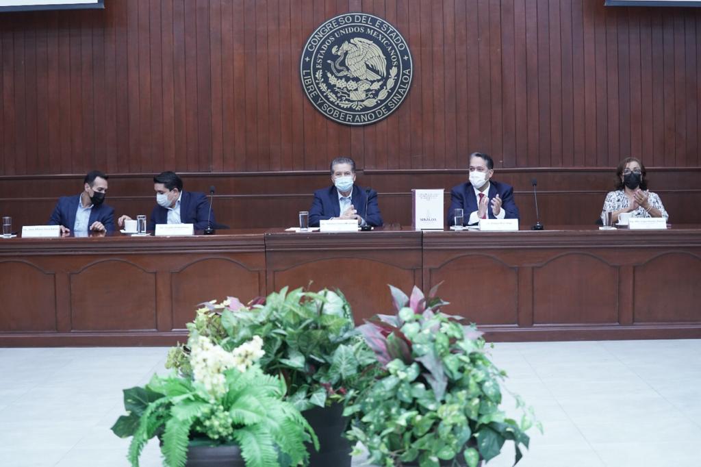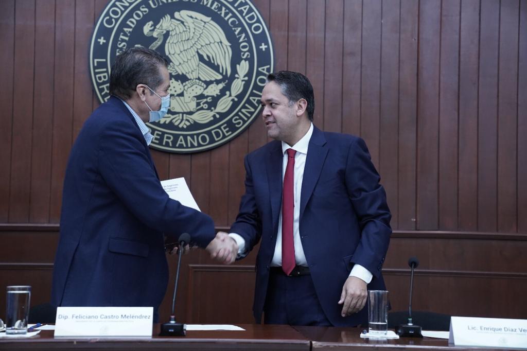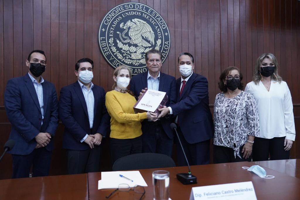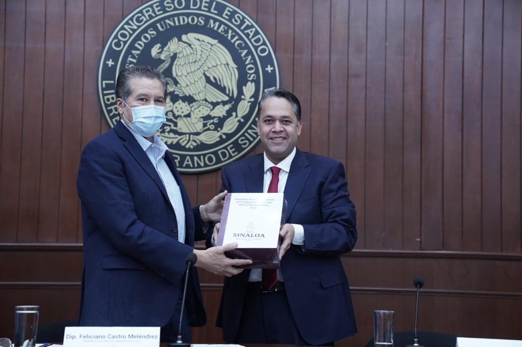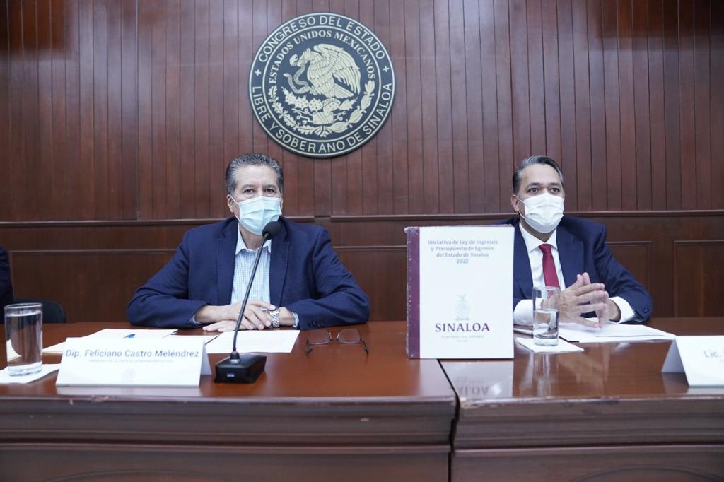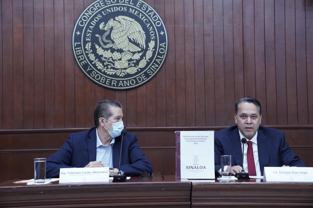 Culiacán, Sinaloa, a 27 de noviembre de 2021. – Por instrucciones del gobernador Rubén Rocha Moya, el secretario de Administración y Finanzas, Enrique Díaz Vega, entregó a los miembros de la Junta de Coordinación Política y de la Comisión de Hacienda Pública y Administración del Congreso del Estado, la iniciativa de Ley de Ingresos y Presupuesto de Egresos del Gobierno del Estado para el ejercicio fiscal 2022, el cual contempla recursos por 58 mil millones de pesos, cantidad que representa un 3.8 por ciento de incremento con respecto al ejercicio fiscal de este año.