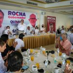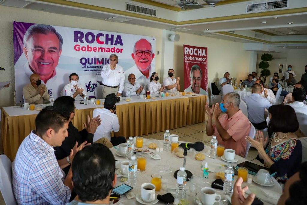 En el evento, al que asistieron representantes de organismos empresariales, Rocha Moya aseguró que los empresarios que decidan invertir en nuestra entidad no necesitarán “los moches”, ya que la transformación que se dará a partir del 06 de junio en la administración estatal se distinguirá por un perfil de honestidad.