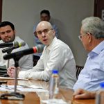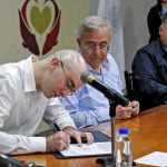 Culiacán, Sinaloa, a 7 de octubre de 2022.- Al firmar un convenio con el secretario técnico de la Presidencia de la República y coordinador de los Programas para el Bienestar, Carlos Torres Rosas, el gobernador Rubén Rocha Moya puso en marcha el apoyo complementario al Bienpesca federal, que consiste en la entrega de 3 mil 600 pesos para 30 mil pescadores ribereños, y que por primera ocasión beneficiará también a 300 mujeres trabajadoras de las cooperativas empacadoras, en respuesta al compromiso que hizo con este sector social.