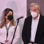 El gobernador Rocha estuvo acompañado en este enlace también por el rector de la UAS, Jesús Madueña Molina; por la delegada del IMSS, Tania Clarissa Medina López; y por el delegado del ISSSTE, Marcial Silva Gómez.