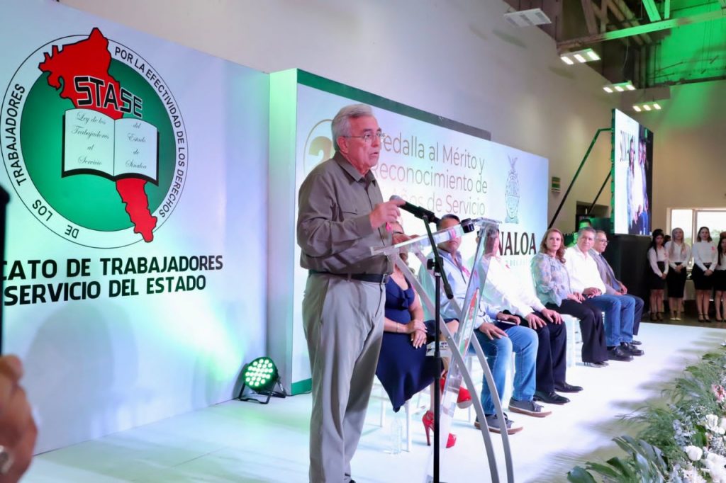 Culiacán, Sinaloa, 17 de octubre del 2022.- El gobernador Rubén Rocha Moya encabezó la entrega de reconocimiento para 207 trabajadores los cuales cumplieron 25 años de trabajo, además se les galardonó con la entrega de una medalla al mérito por el servicio que han brindado hasta el día de hoy.