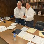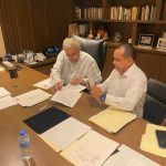 Culiacán, Sinaloa, 12 de agosto de 2022.- El gobernador Rubén Rocha Moya suscribió con el secretario general de la Sección 53 del Sindicato Nacional de Trabajadores de la Educación (SNTE), Ricardo Madrid Uriarte, un convenio que contempla recategorización de plazas, mejoras salariales y prestaciones, y aumento a las pensiones para maestros jubilados y pensionados que perciban menos de 10 mil pesos mensuales, acuerdos que representan una erogación estatal de 21 millones 965 mil pesos en favor del magisterio.