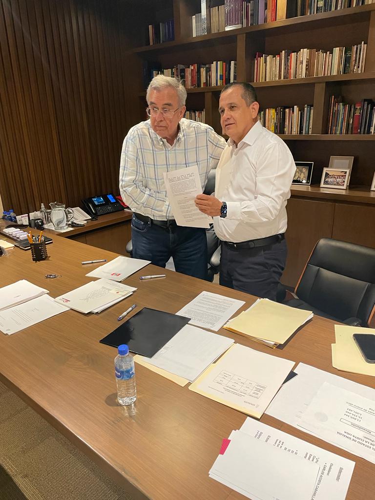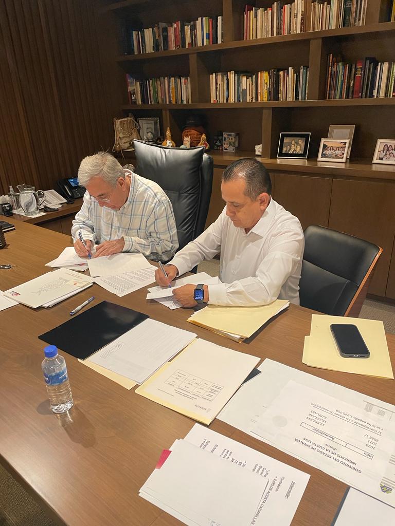 Culiacán, Sinaloa, 12 de agosto de 2022.- El gobernador Rubén Rocha Moya suscribió con el secretario general de la Sección 53 del Sindicato Nacional de Trabajadores de la Educación (SNTE), Ricardo Madrid Uriarte, un convenio que contempla recategorización de plazas, mejoras salariales y prestaciones, y aumento a las pensiones para maestros jubilados y pensionados que perciban menos de 10 mil pesos mensuales, acuerdos que representan una erogación estatal de 21 millones 965 mil pesos en favor del magisterio.