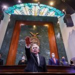 Culiacán, Sinaloa, domingo 31 de octubre de 2021. Tras rendir protesta como gobernador constitucional del estado de Sinaloa ante el Congreso del Estado, Rubén Rocha Moya le imprimió a la ceremonia su peculiar estilo de expresar tanto sus agradecimientos, como sus principios y compromisos, propiciando un ambiente de justo balance entre la solemnidad y la calidez.