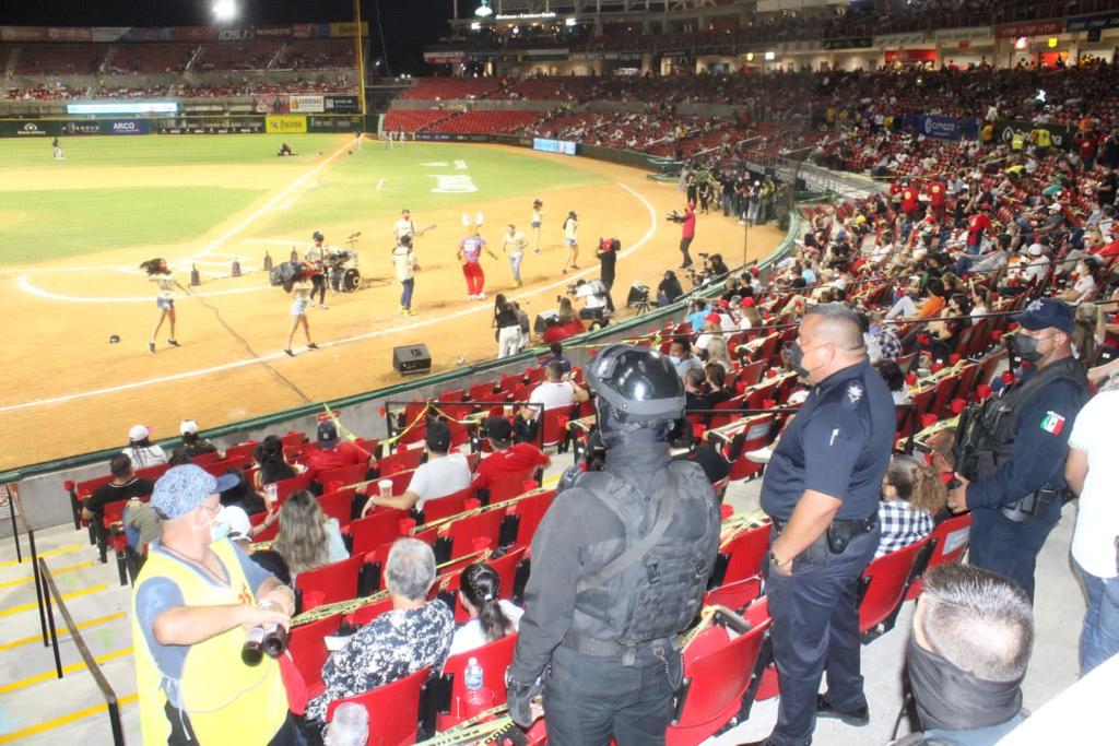 Refirió que 8 aficionados fueron retirados por incumplimiento a los protocolos sanitarios, en la estrategia de vigilancia y bioseguridad en la que participaron alrededor de 350 elementos entre Policías Municipales, Tránsito, Protección Civil y personal del staff del club Venados.
