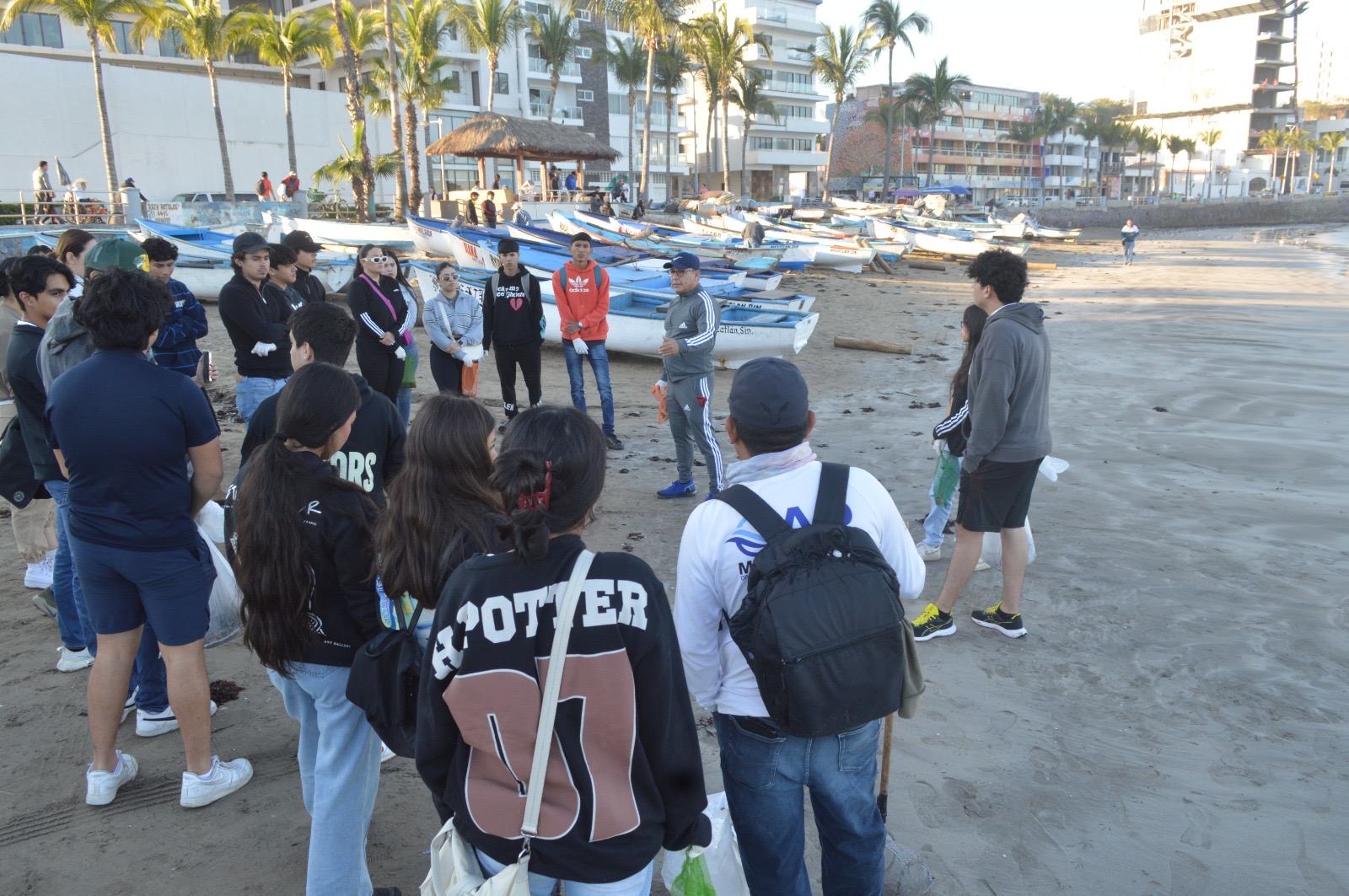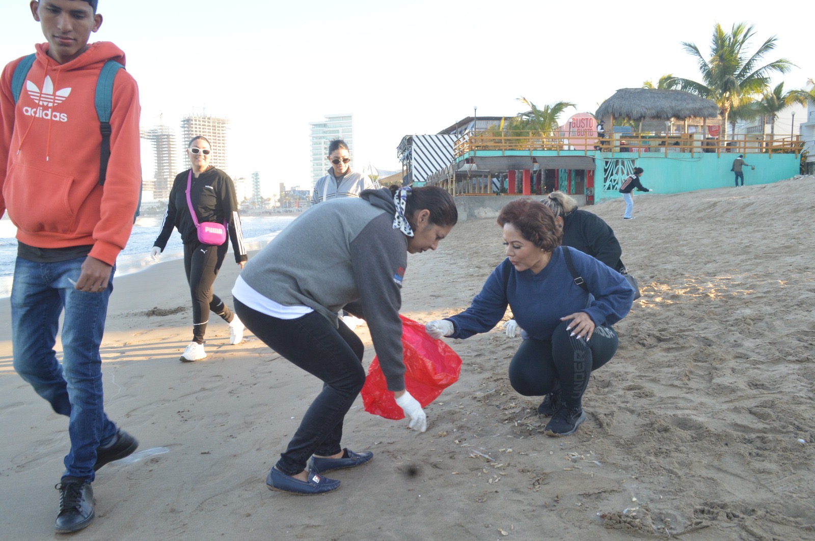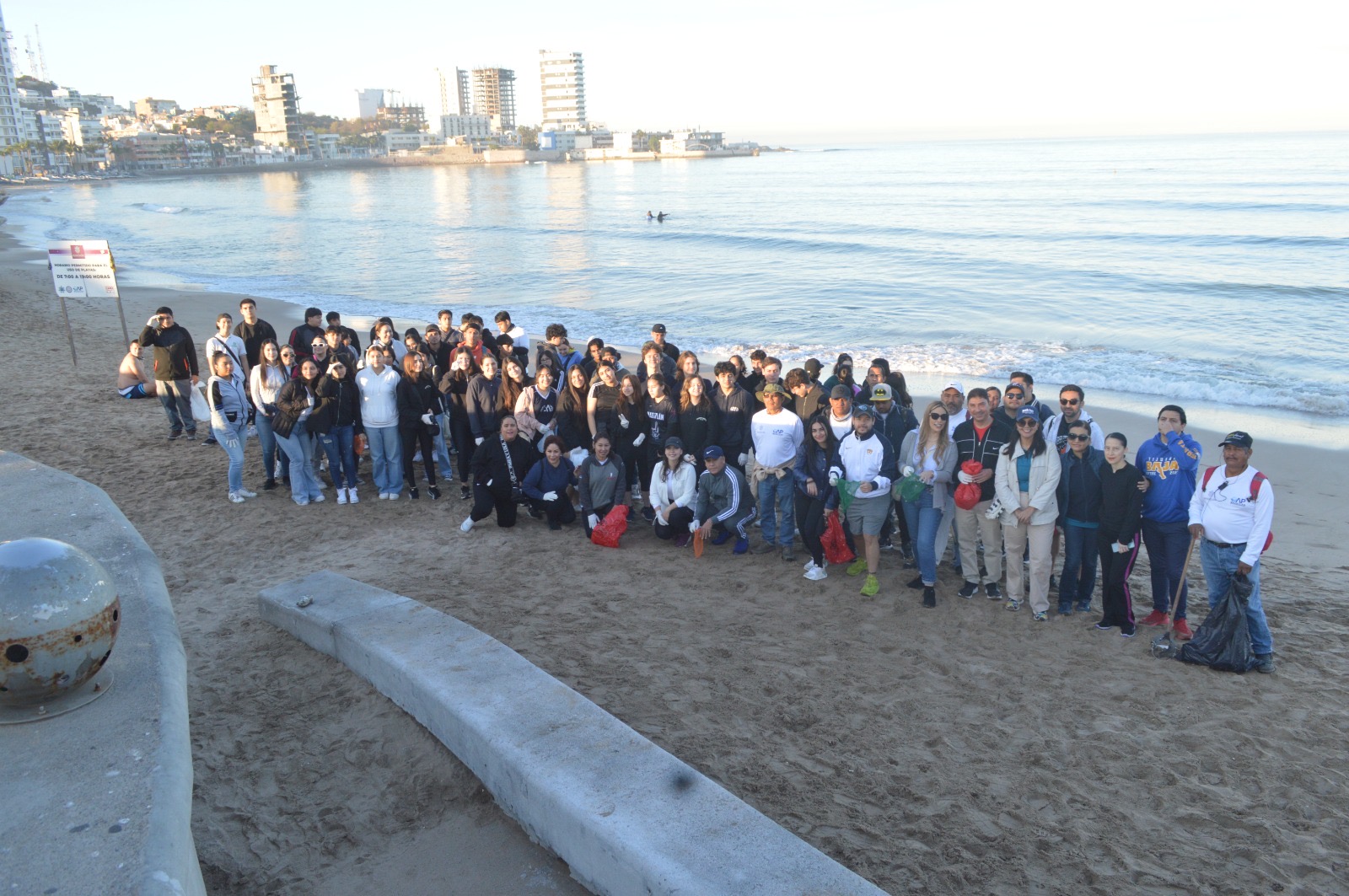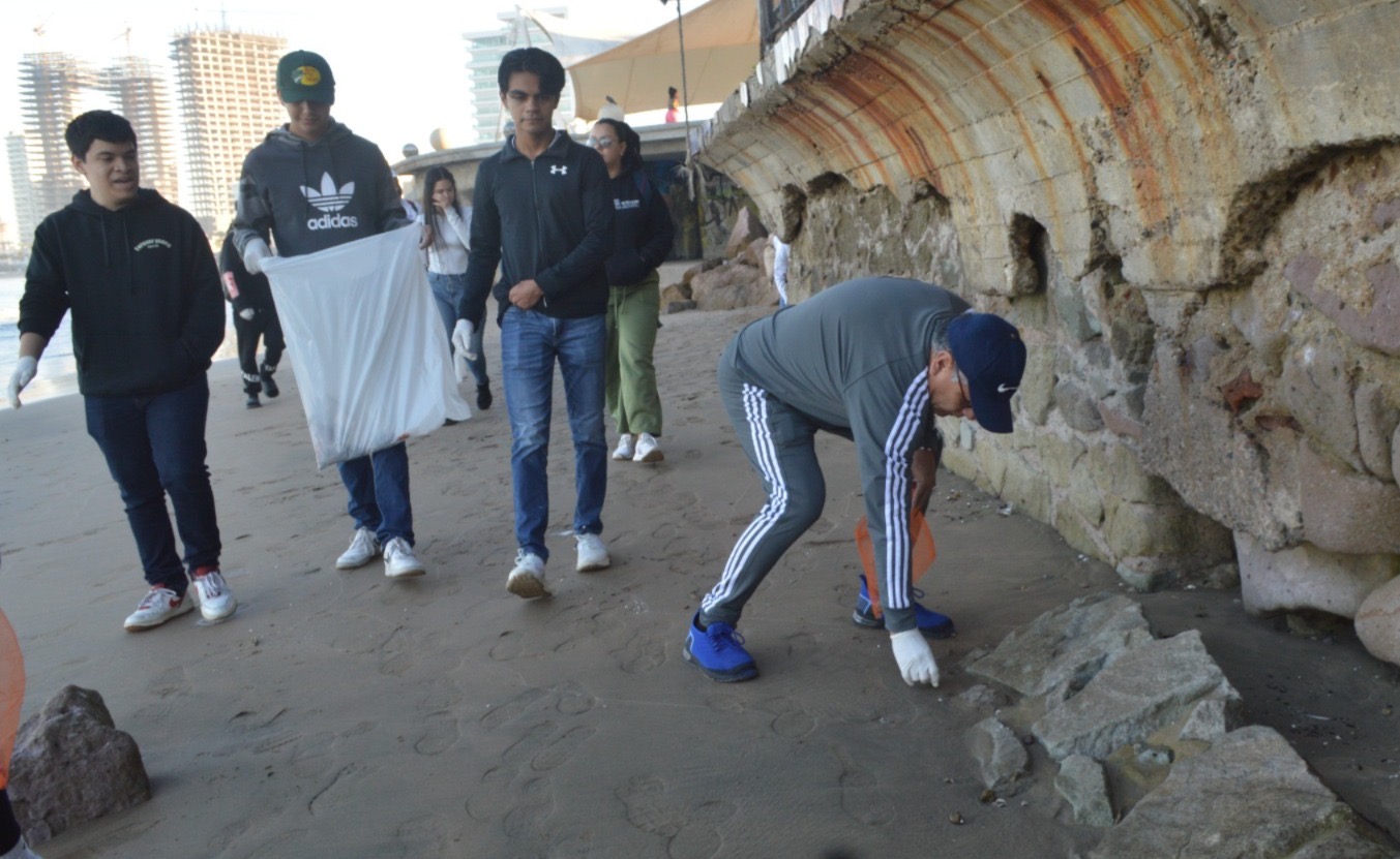 En la limpieza, que inició a la altura del emblemático Monumento al Pescador, participaron también estudiantes de diversas instituciones educativas como COBAES, UAD, ITESUS y CONALEP, quienes respondieron al llamado de la Directora del IMJU, Cindy Rodríguez Lizárraga, para sumarse a esta noble causa.
