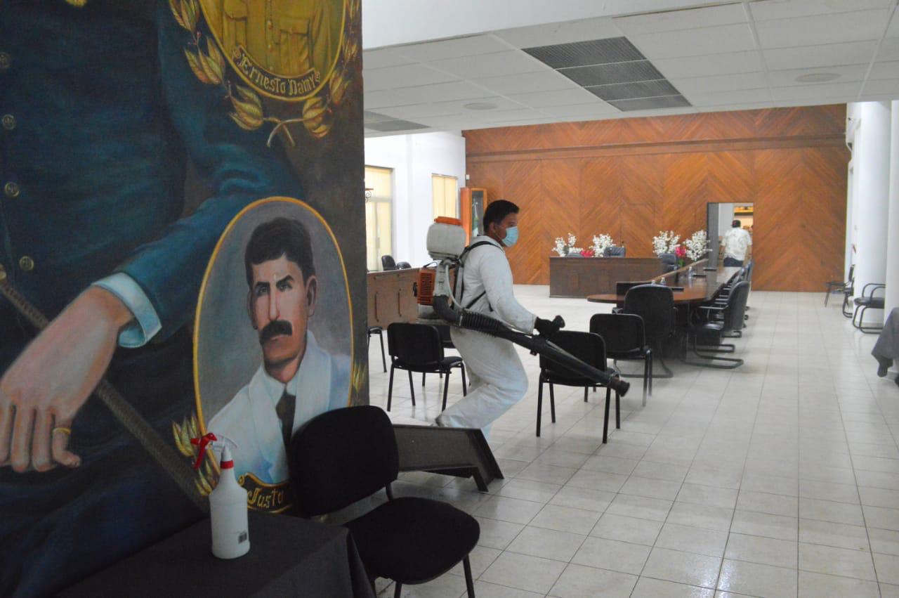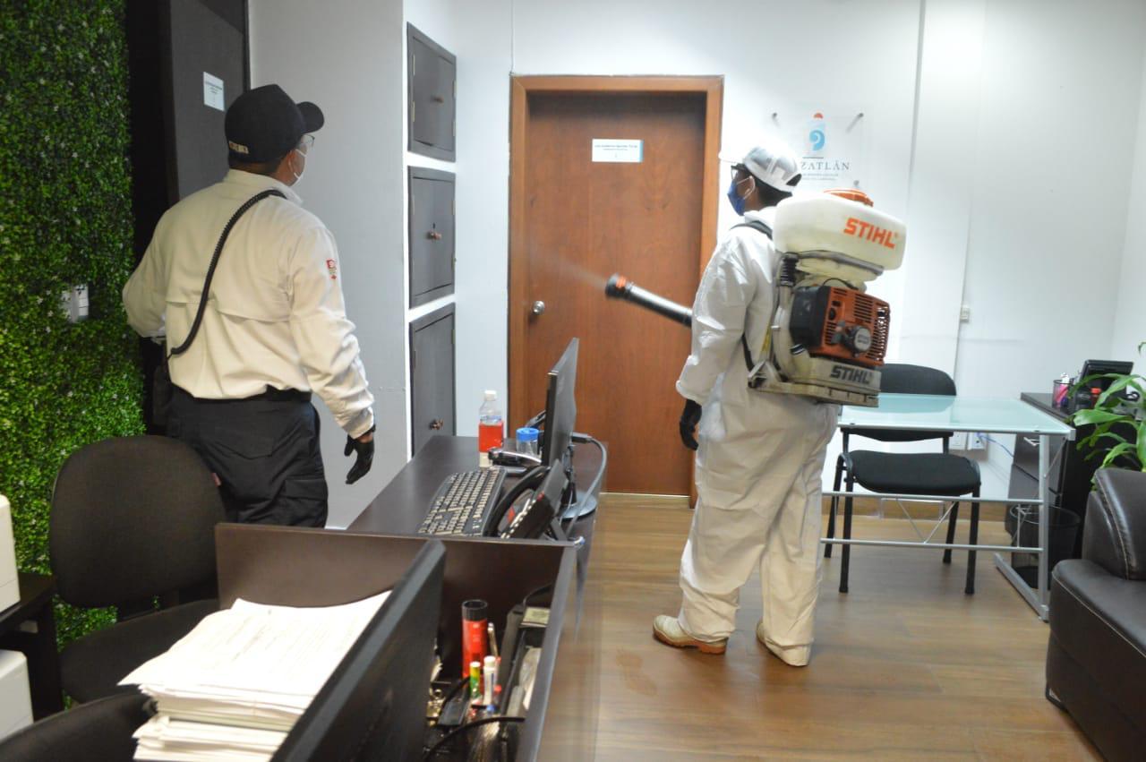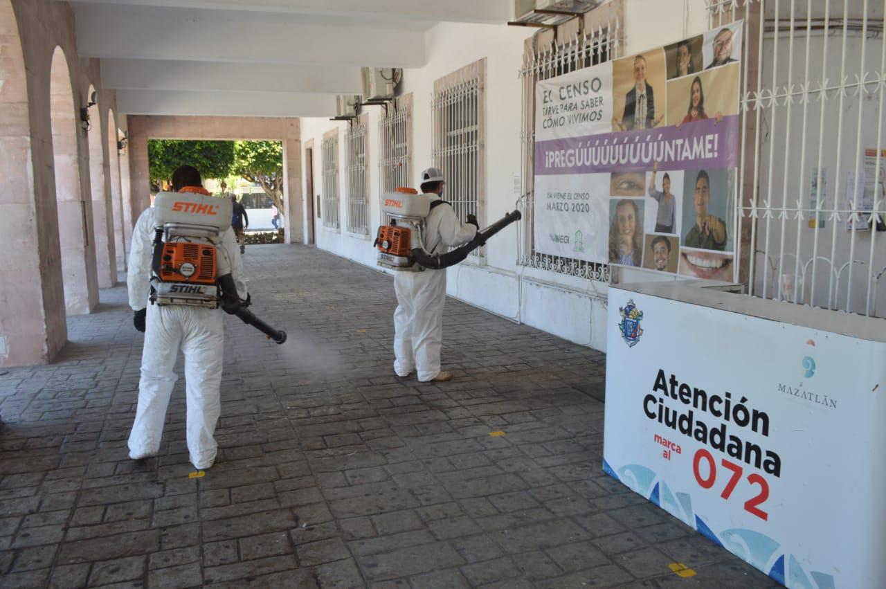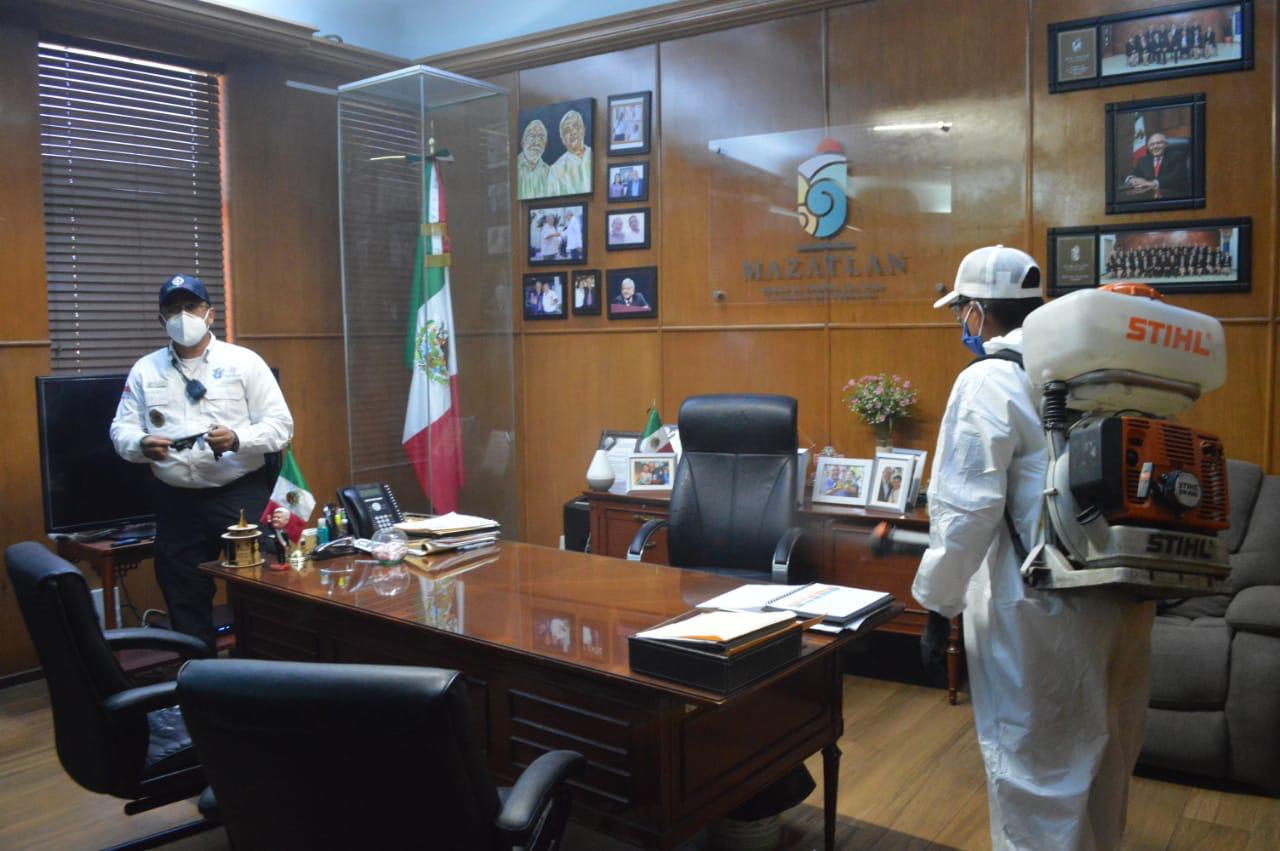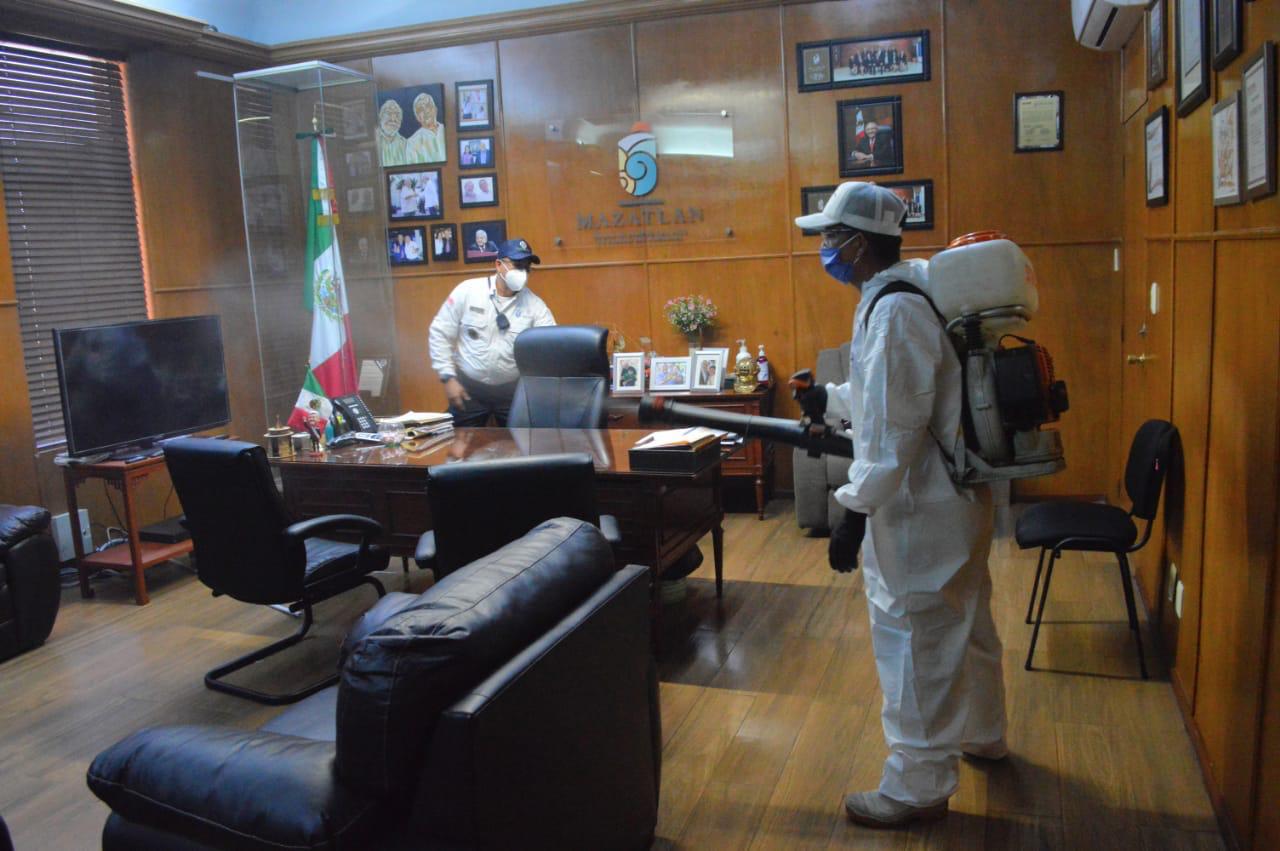 “Nos encontramos en las instalaciones del Ayuntamiento de Mazatlán, realizando un saneamiento a profundidad de todas y cada una de las dependencias que tienen su actividad diaria y ordinaria en este edificio, siguiendo las recomendaciones que hemos recibido del Gobierno Federal, y sobre todo las instrucciones del Presidente Municipal Químico Luis Guillermo Benitez», comentó.