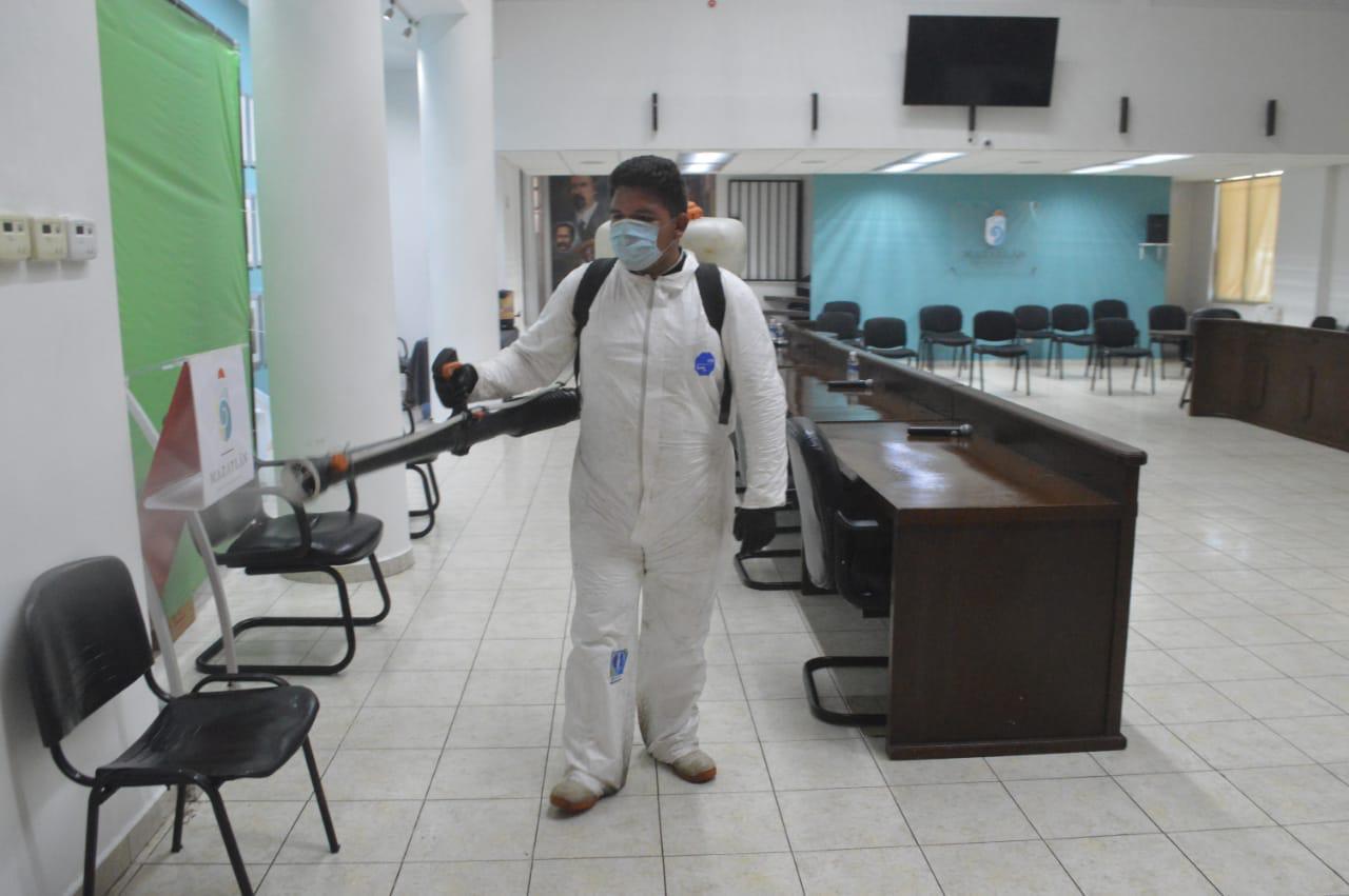 Los “Cazavirus” recorrieron cada una de las oficinas, Sala de Cabildo, el patio central, elevador, pasillos, escaleras y zonas de acceso, para garantizar una limpieza total.