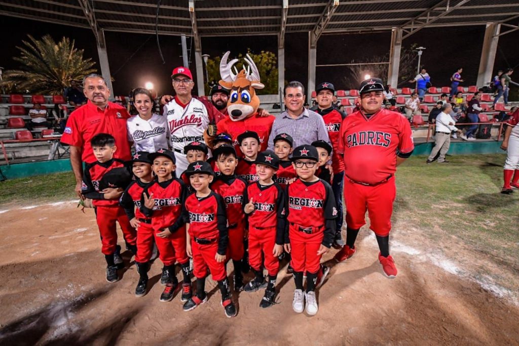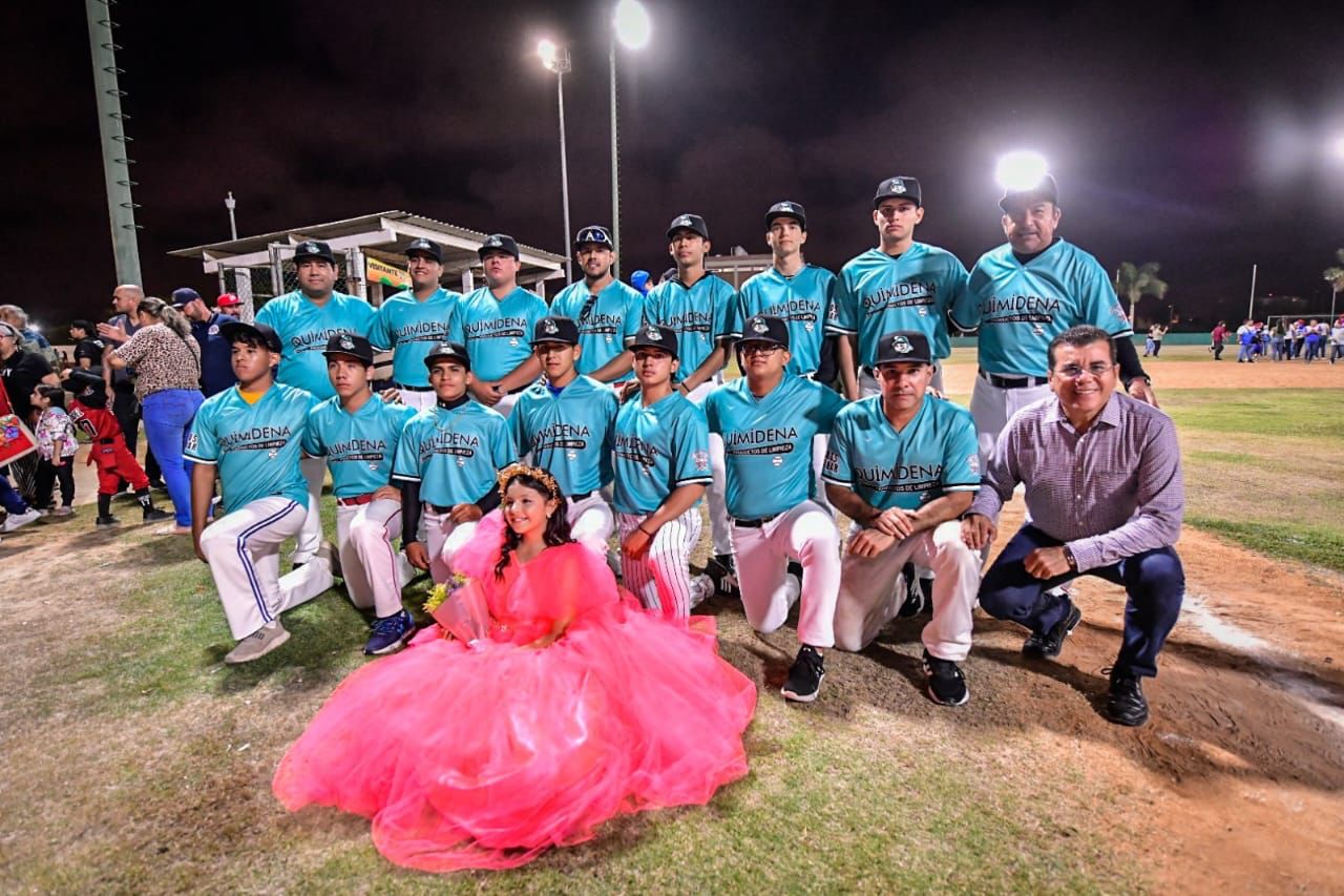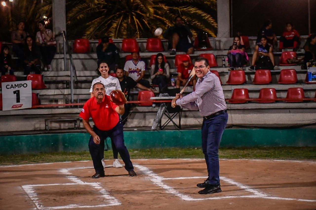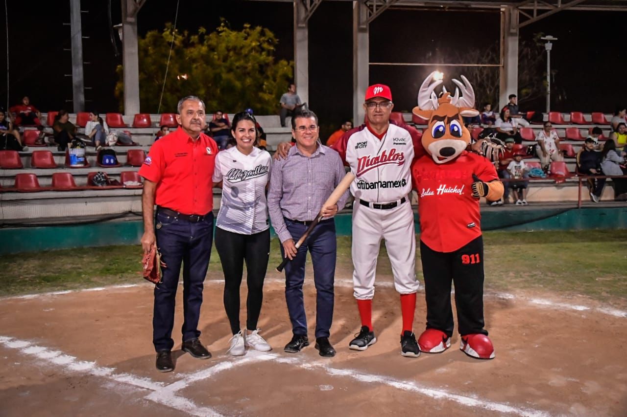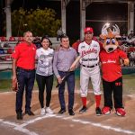 Canta el Alcalde Edgar González el playball de la Liga de Béisbol Primera Fuerza Imdem e inaugura el nuevo alumbrado del campo 1 de beisbol del complejo deportivo.