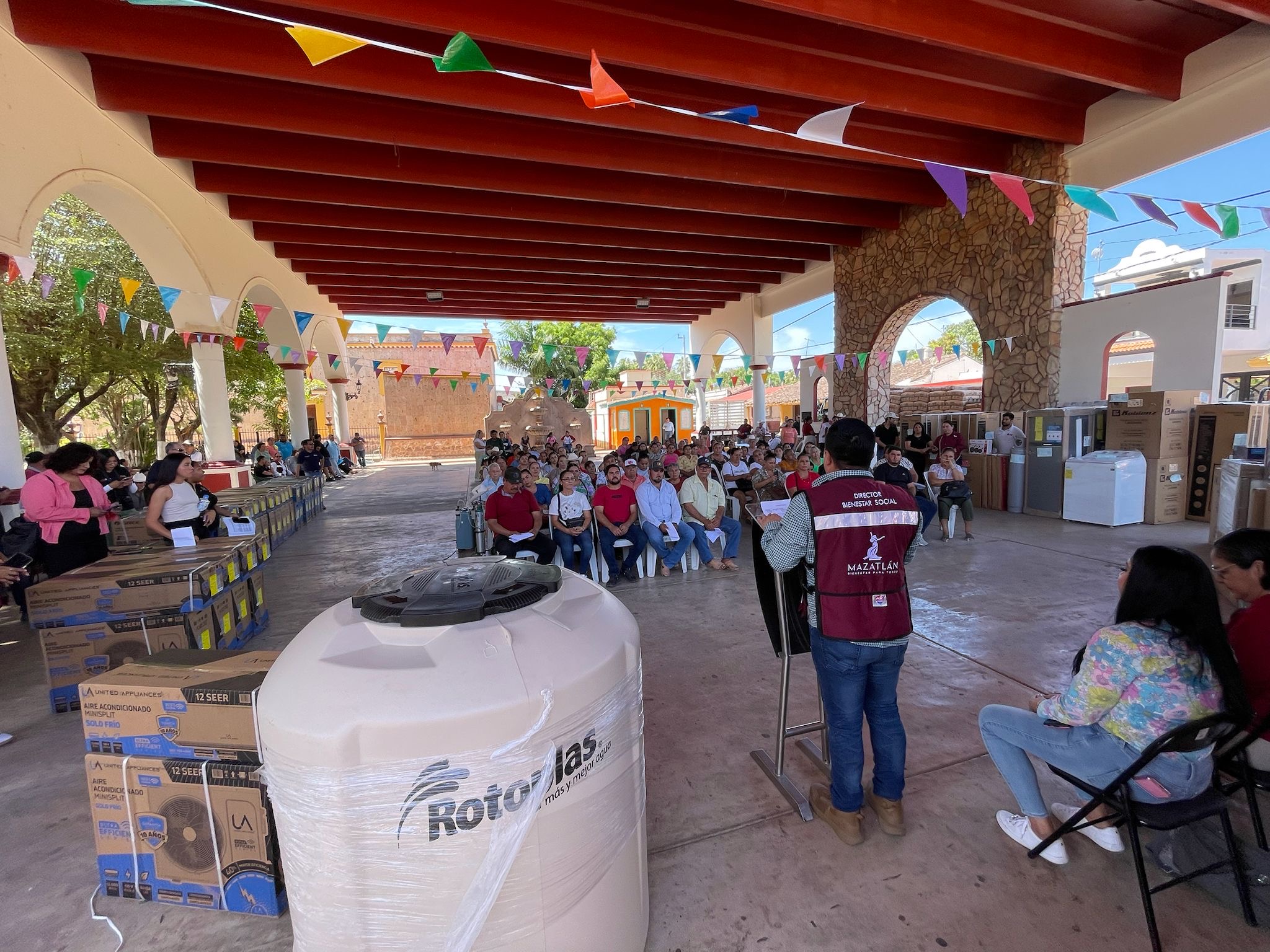 En la sindicatura de El Quelite, el Gobierno Municipal lleva a cabo la entrega masiva de los apoyos como minisplit, materiales de construcción y electrodomésticos