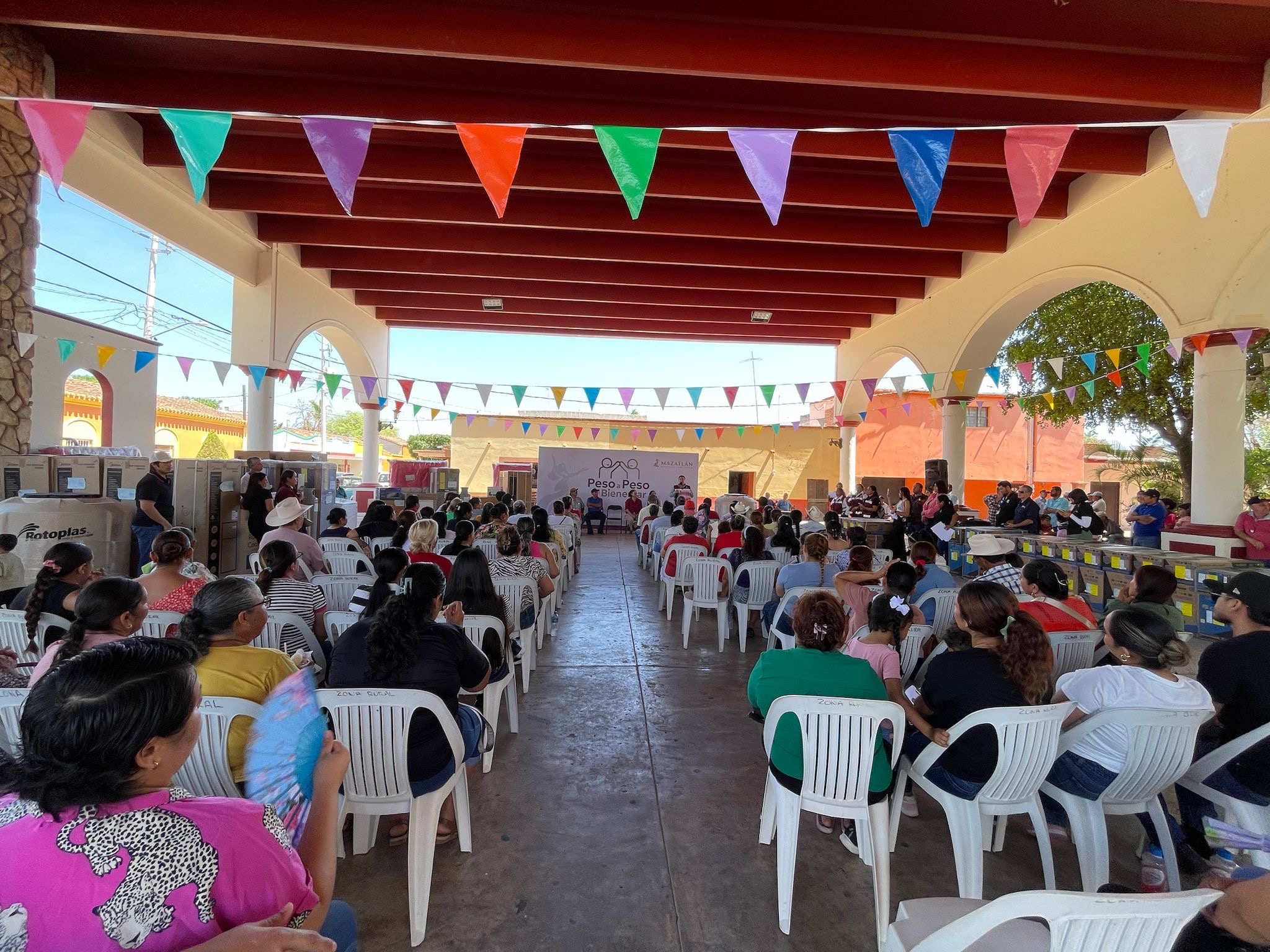 El Quelite, Mazatlán, Sinaloa, 19 de junio de 2025.– El Gobierno Municipal, que encabeza la Presidenta Estrella Palacios Domínguez, a través de la Dirección de Bienestar y Desarrollo Social, benefició a 117 familias de 8 comunidades de la zona rural de Mazatlán, con el programa “Peso a Peso del Bienestar”.