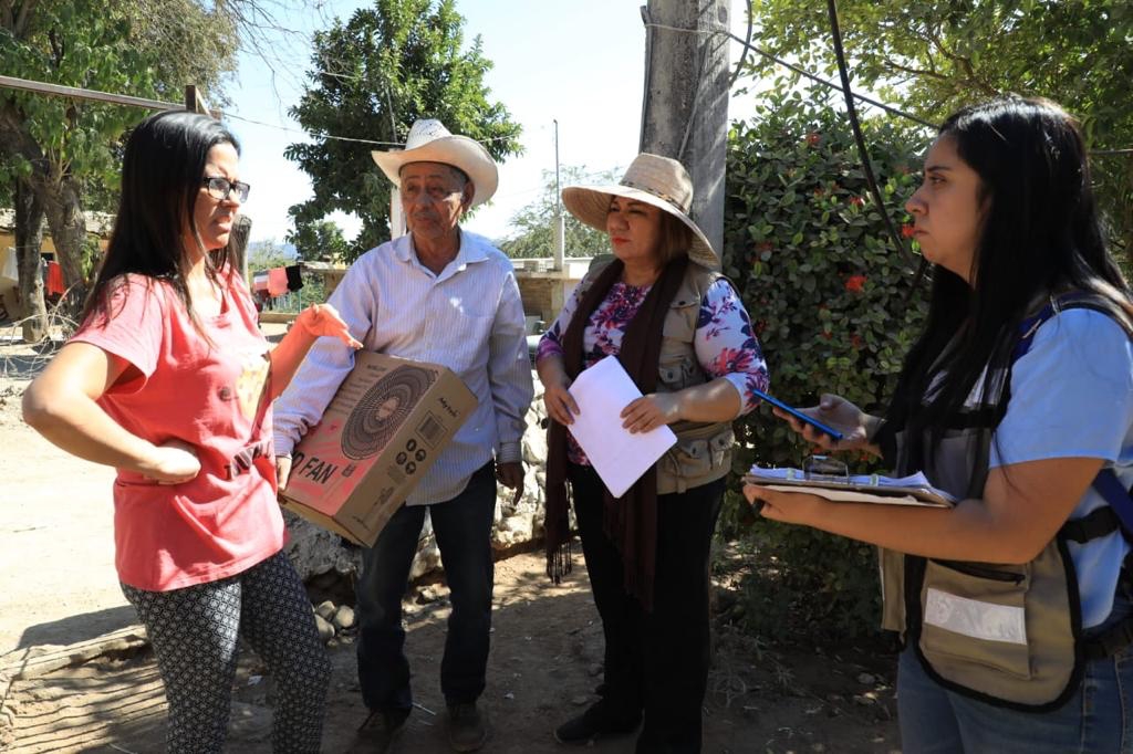 «Ahorita venimos a entregar unas peticiones que recibimos en el censo de necesidades que hicimos hace unos días; el gobernador Rubén Rocha Moya nos pidió que atendiéramos de manera inmediata, traemos unos tinacos que nos pidieron, refrigeradores, aires acondicionados, catres, unas chamarras también, lo que nos solicitaron y vamos a ir casa por casa de acuerdo al censo», señaló.