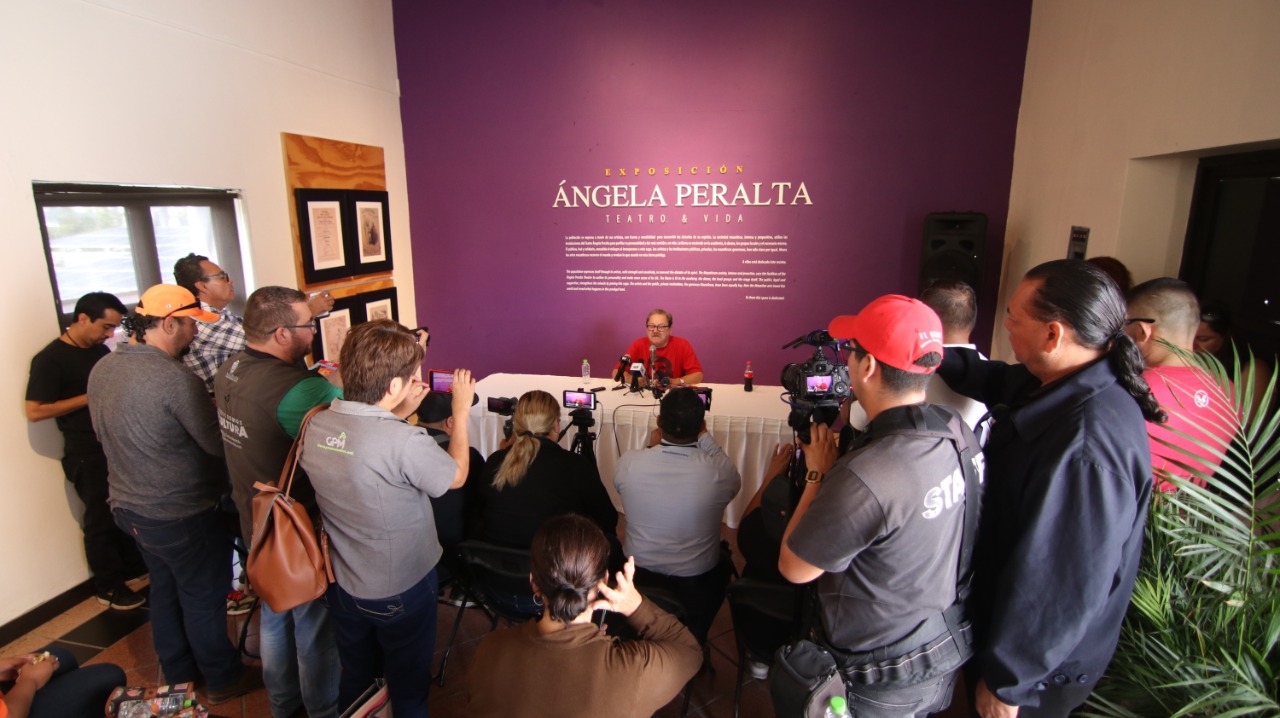 Mazatlán, Sinaloa.- Paco Ignacio Taibo II, director del Fondo de Cultura Económica, ofreció una rueda de prensa en el Teatro Ángela Peralta, en la que habló de su entrañable relación con Mazatlán y de su amor por un Festival que bajo la administración del Químico Luis Guillermo Benitez Torres, ha sido rescatado.