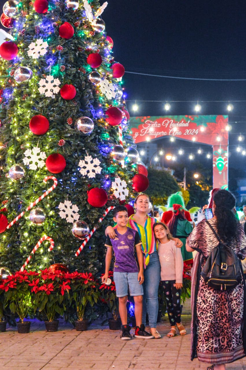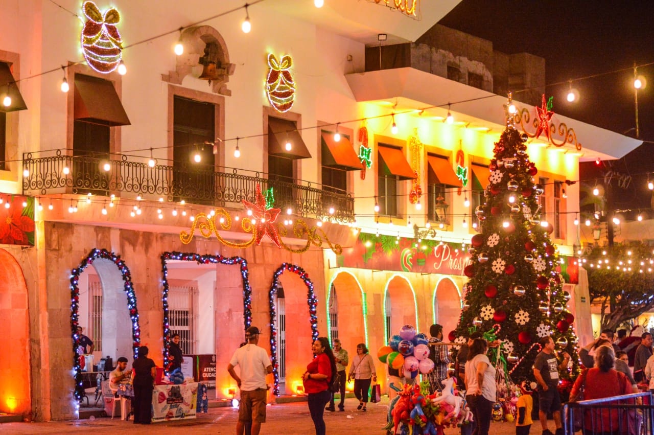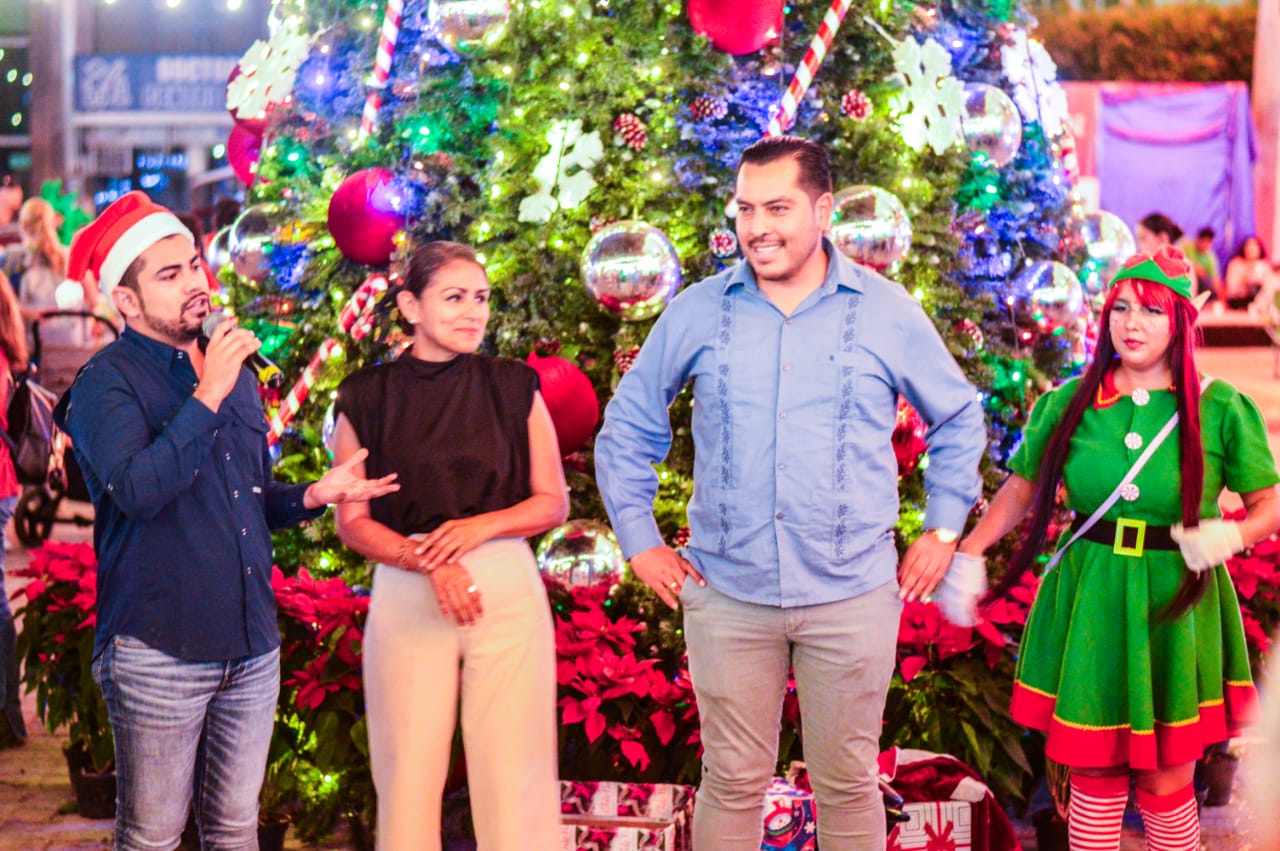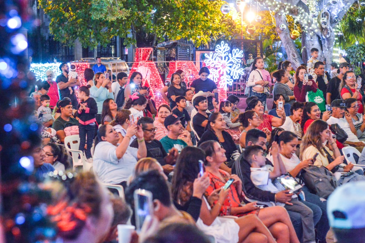 Familias mazatlecas disfrutan de evento especial y el encendido de la iluminación navideña en la Plazuela República y la explanada del Palacio Municipal