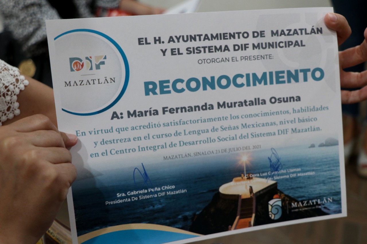 Mazatlán.- Se graduó la tercera generación del Curso de Lengua de Señas Mexicanas que se imparte en el Centro Integral de Desarrollo Social de DIF Mazatlán de la colonia Infonavit Playas, con el fin de continuar impulsando el valor de la inclusión en el puerto.